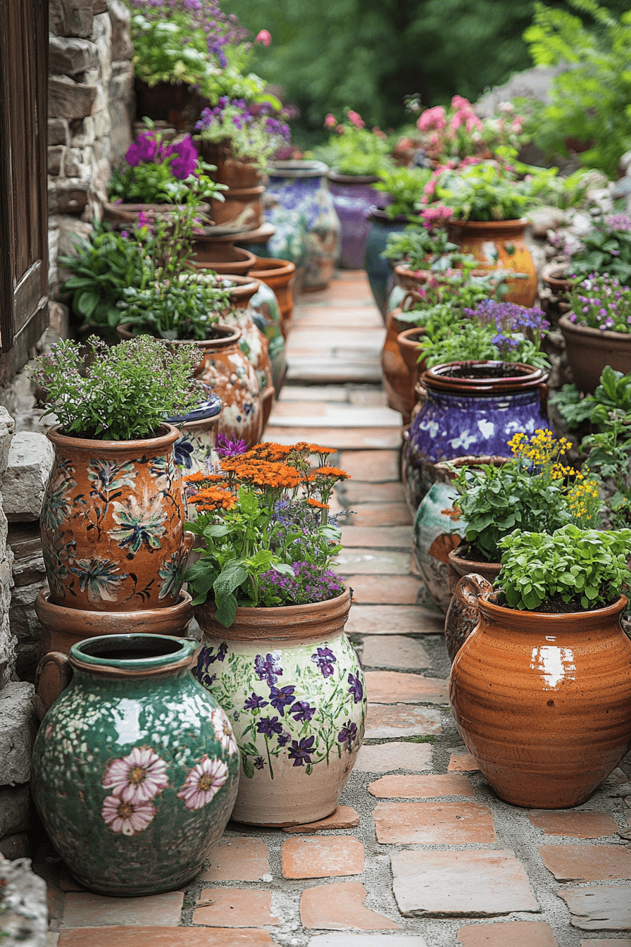 Add soulful texture with antique yard decor ideas that incorporate aged stoneware into your outdoor design. Think vintage crocks, earthen jugs, and moss-kissed pottery repurposed as rustic planters or accents. These pieces exude character and history, offering a unique contrast to fresh blooms and greenery. Their weathered surfaces create a layered, curated feel in the garden. Whether tucked along a path or displayed on a patio, they make quiet yet impactful statements.