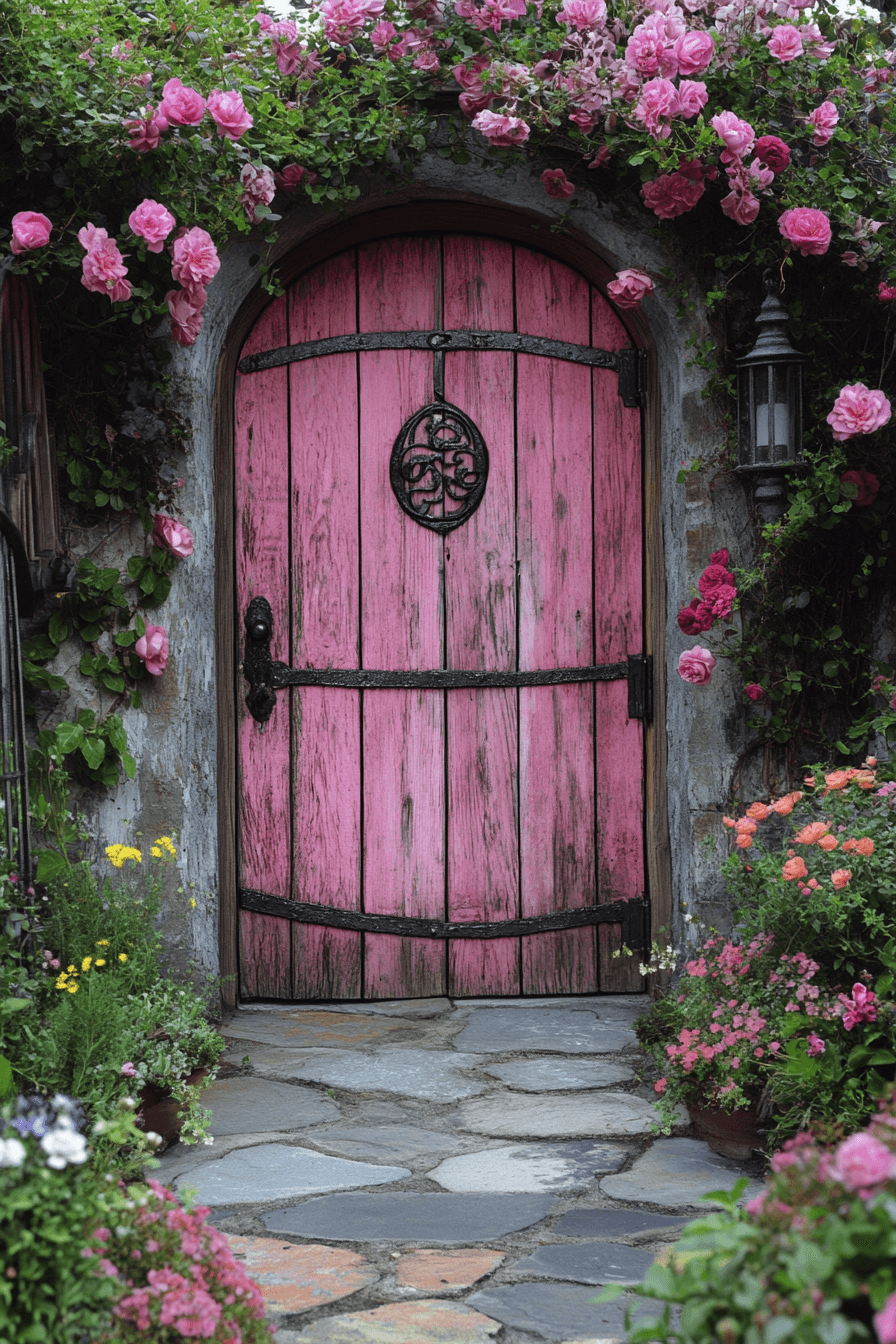 Use antique yard decor ideas to turn reclaimed gates into stunning garden features with rustic character. Old doors or iron gates can serve as unique entryways, focal walls, or even trellis frames for climbing plants. Their patina and vintage hardware bring instant storytelling charm. Surround them with roses or ivy to create a romantic, lived-in look. These salvaged treasures become showstopping moments in any outdoor design.