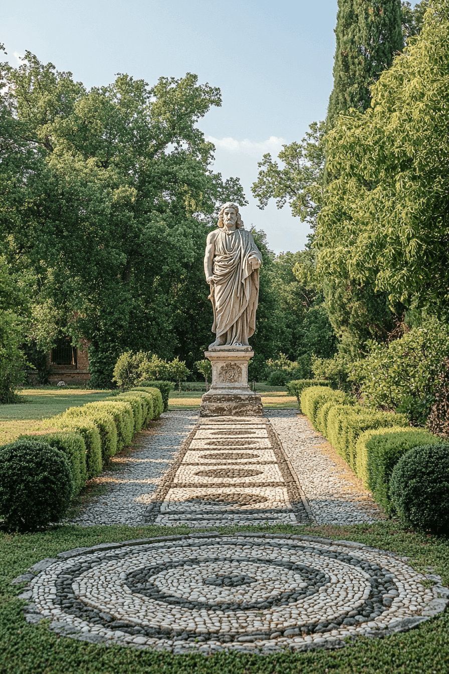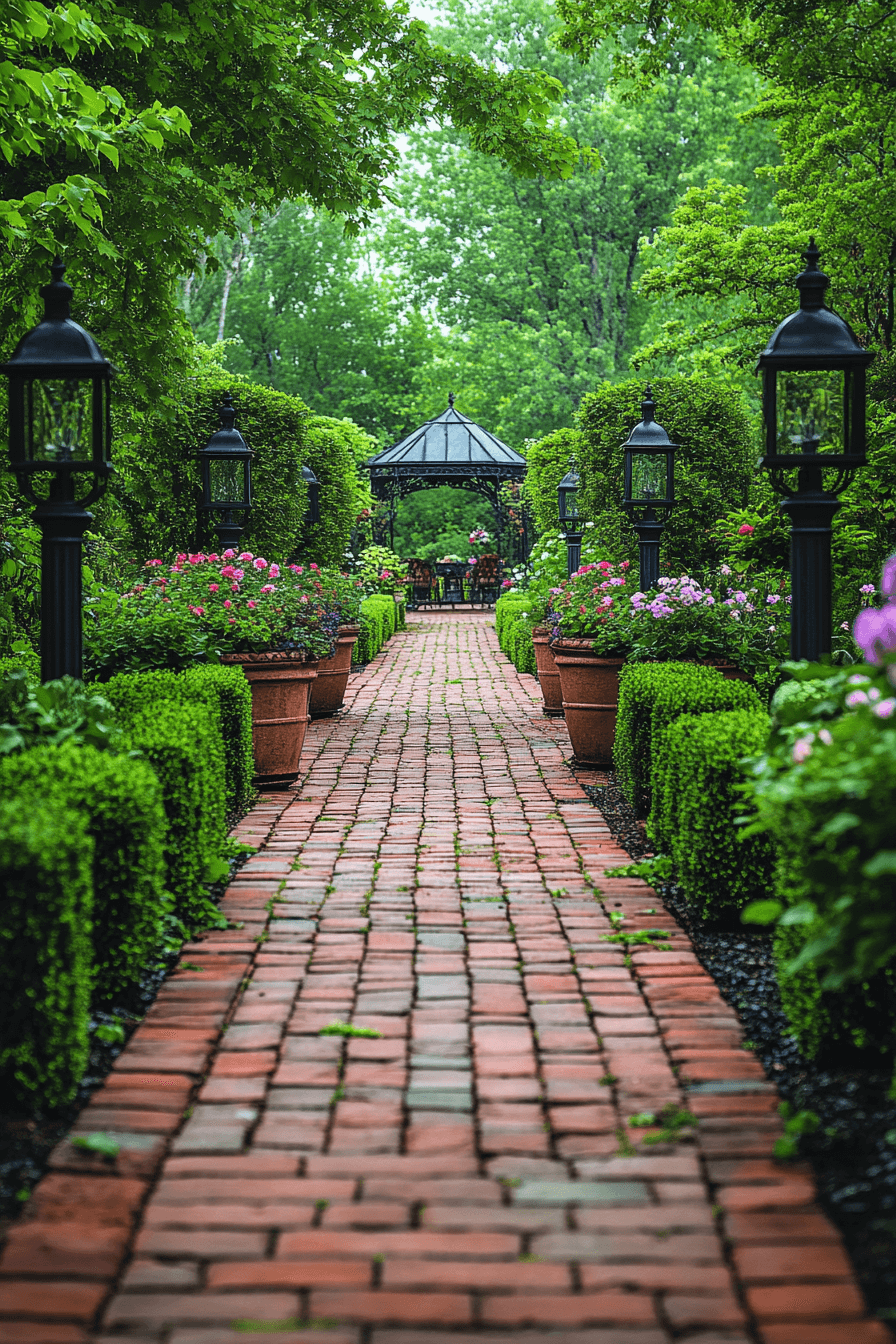 Guide guests through your landscape with antique yard decor ideas inspired by old-world garden paths. Brick walkways and crushed stone create classic structure beneath your feet. Cast-iron lanterns and flickering torches enhance nighttime charm. Pair them with neatly clipped hedges for a clean, refined finish. The effect is both functional and beautiful.