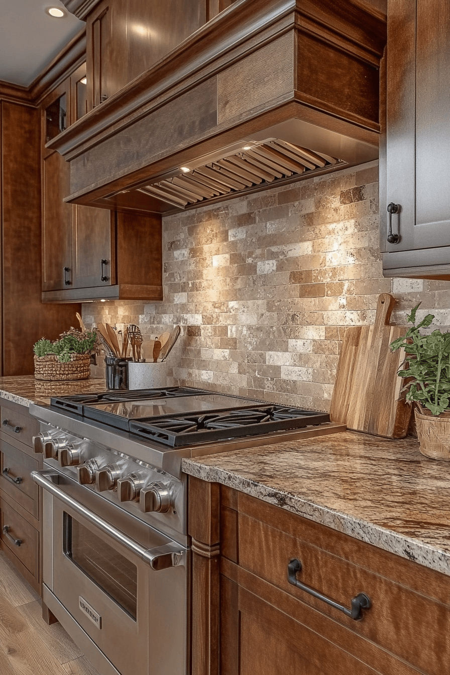 Natural stone tiles like granite, slate, or travertine add earthy richness to backsplash kitchen ideas that prioritize texture and timeless appeal. Each piece is naturally unique, giving your kitchen a one-of-a-kind look full of depth and charm. These materials are sturdy and stand up beautifully to everyday kitchen use. When sealed properly, they offer years of practical luxury. It’s a way to bring nature indoors in the most elegant way.
