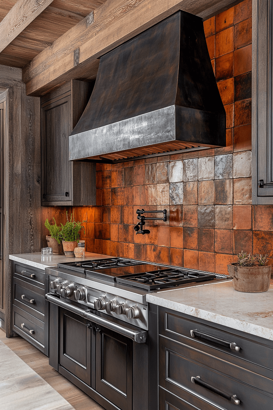 Terracotta tiles bring a cozy, earthy charm to backsplash kitchen ideas with their rich tones and rustic personality. The warm, reddish hues evoke Mediterranean vibes and make any kitchen feel welcoming. Their matte finish and handmade feel add layers of texture and character. You can mix them with neutrals or pair them with vibrant accents for a bold statement. These tiles are all about soul and tradition.