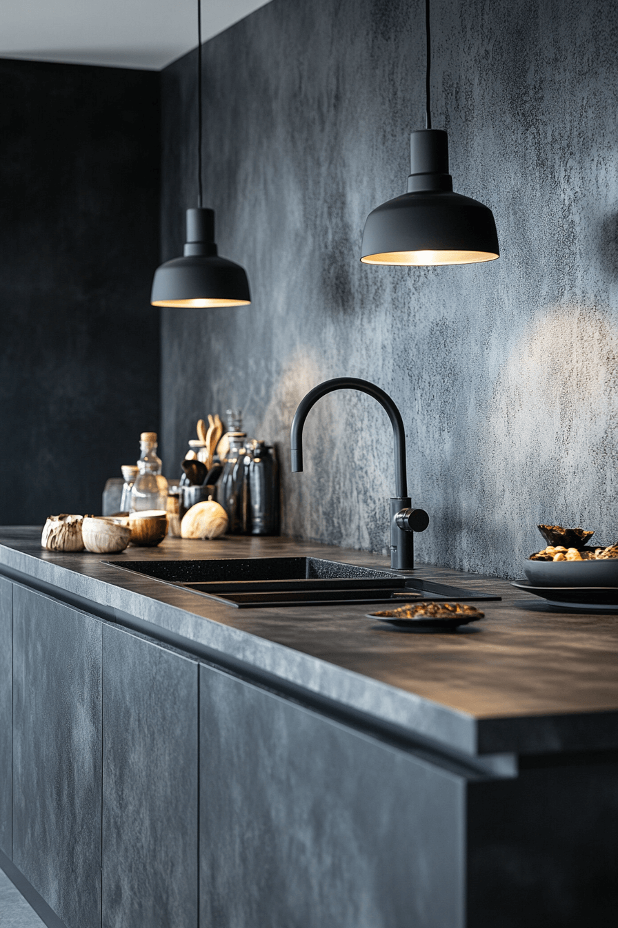 Concrete backsplashes give an edgy, minimalist flair to modern backsplash kitchen ideas with their smooth, matte texture. Whether you opt for raw grey or a polished finish, concrete adds a bold architectural statement. Its subtle imperfections bring character while maintaining a sleek aesthetic. Durable and easy to customize, it’s perfect for industrial or contemporary spaces. It’s understated, but undeniably cool.