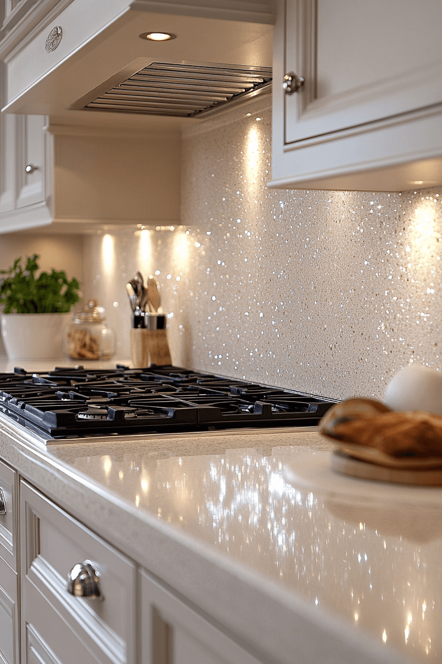 Mirrored backsplashes make your kitchen shine—literally—by reflecting both natural and ambient light. They’re a stunning choice for backsplash kitchen ideas that aim to expand visual space while adding glamour. This sleek surface pairs beautifully with modern cabinetry and minimalist decor. It’s also incredibly easy to maintain with just a quick wipe. Ideal for compact kitchens or anyone wanting extra sparkle.