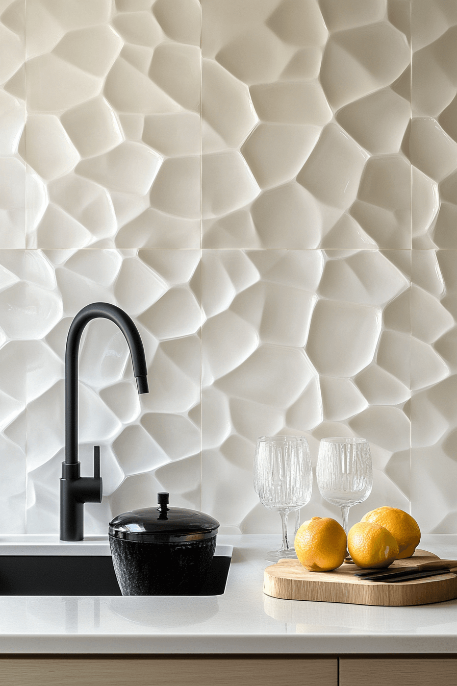 3D tiles transform your backsplash kitchen ideas into bold, tactile statements with their sculptural shapes and shadow play. These dimensional designs add depth, movement, and artistic drama to your walls. Whether you choose subtle ripples or geometric extrusions, they captivate from every angle. Their dynamic surfaces reflect light in mesmerizing ways, making your backsplash an unforgettable focal point. Perfect for modern or high-concept spaces.