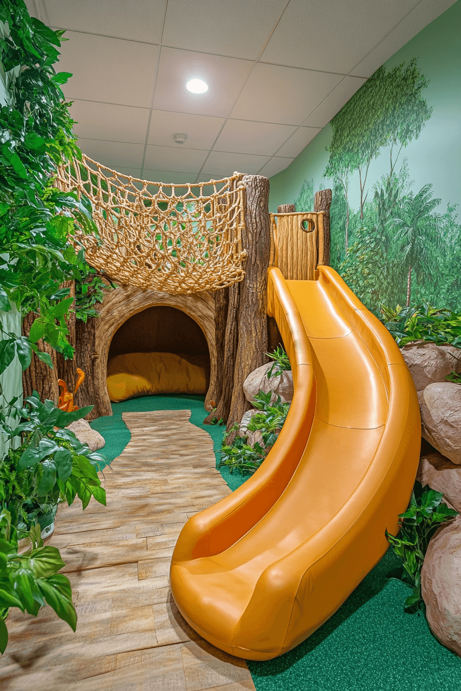 Turn your lower level into a full-on jungle adventure with basement playroom ideas that bring movement and excitement indoors. Think climbing walls, rope swings, and even small hanging bridges to spark imagination. Bright murals and leafy decor can make the space feel like a real jungle escape. Soft mats and cushioned edges keep everything safe while kids explore. It’s a great way to encourage active play and creativity at the same time. The energy in this kind of room is nonstop fun. Click to start building your own jungle-inspired play zone.