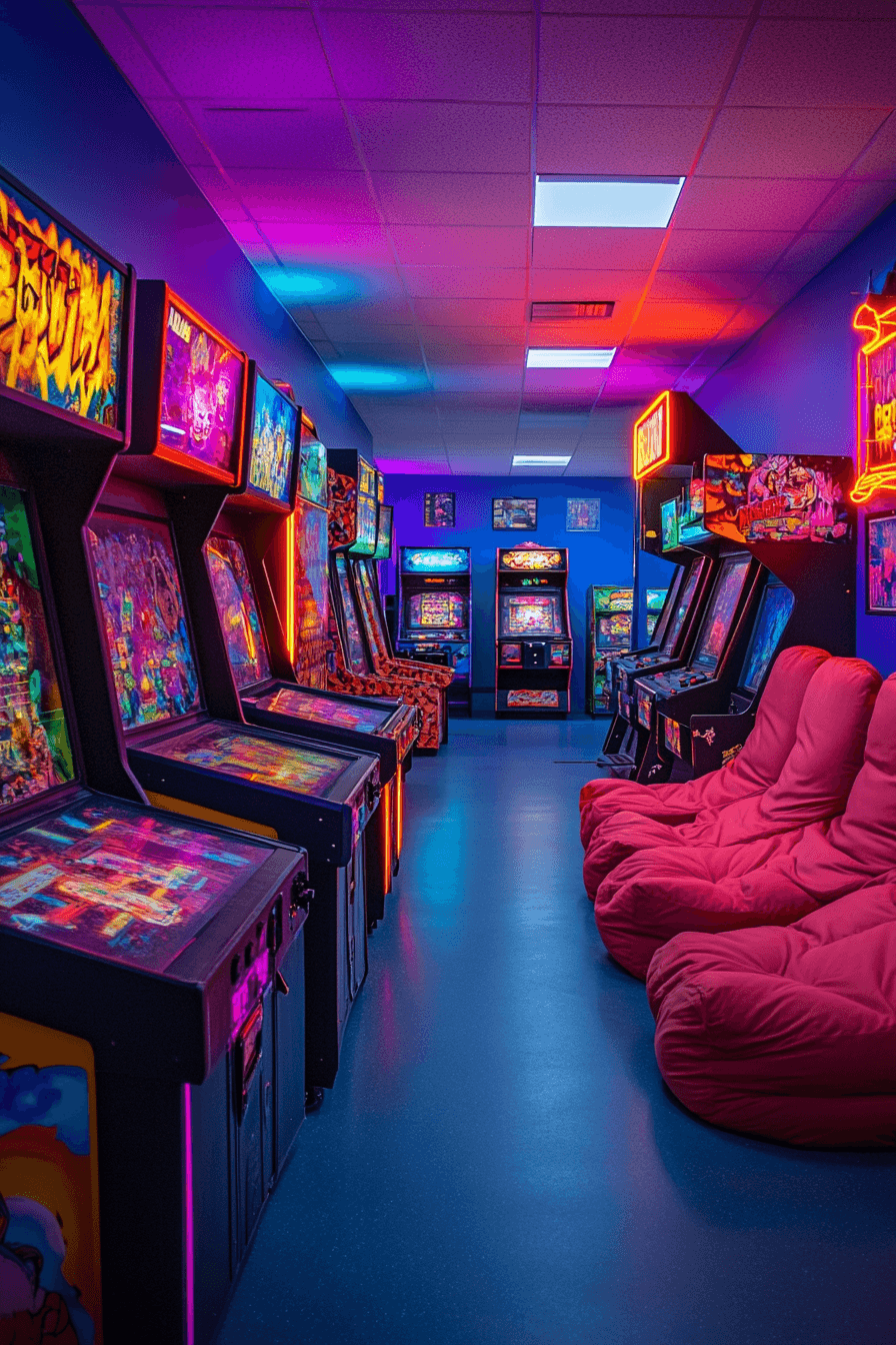 Add a retro twist to your home with basement playroom ideas that recreate a classic video game arcade. Bring in old-school arcade machines alongside modern gaming consoles for the best of both worlds. Neon lights and vintage posters help set the nostalgic vibe. A comfy seating area makes it easy to hang out and play for hours. It’s a fun space for both kids and adults to enjoy together. The room becomes a go-to spot for entertainment and bonding. Press start on your own arcade setup today.