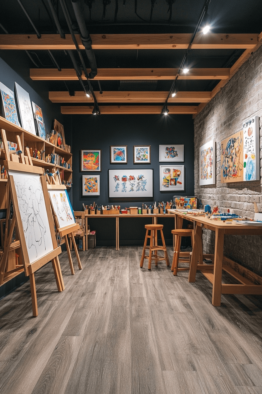 Set up a creative corner with basement playroom ideas that encourage artistic expression and imagination. Fill the space with supplies for painting, drawing, and building, all within easy reach. Durable, easy-to-clean surfaces make it stress-free for both kids and parents. A gallery wall gives kids a place to proudly display their creations. It’s a space where creativity can really take off. The environment feels inspiring and personal. Tap to design an art-filled playroom kids will love.