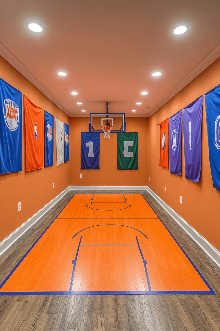 Build a high-energy play space with basement playroom ideas centered around sports and movement. Mini hoops, small goals, and fun equipment can turn the room into an indoor training zone. Soft or turf-style flooring keeps everything safe while kids stay active. Add team colors or sports decor to personalize the space. It’s perfect for burning energy no matter the weather outside. The setup keeps kids moving and engaged. Click to create your own sports-themed playroom at home.