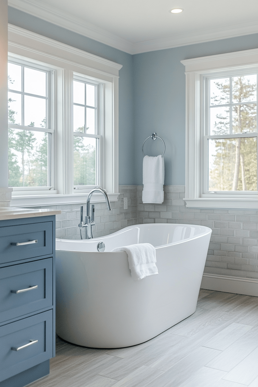 A soft, tide-inspired palette instantly creates a calming and welcoming atmosphere. In a beach house bathroom, layering gentle blues with sandy neutrals feels like bringing the shoreline indoors. The colors flow naturally together, making the space feel relaxed and easy to enjoy. Adding elements like textured tile or shiplap walls brings in just enough visual interest. It’s soothing without feeling boring, which makes it perfect for everyday comfort. Create your own tide-inspired escape and enjoy the peaceful vibe.