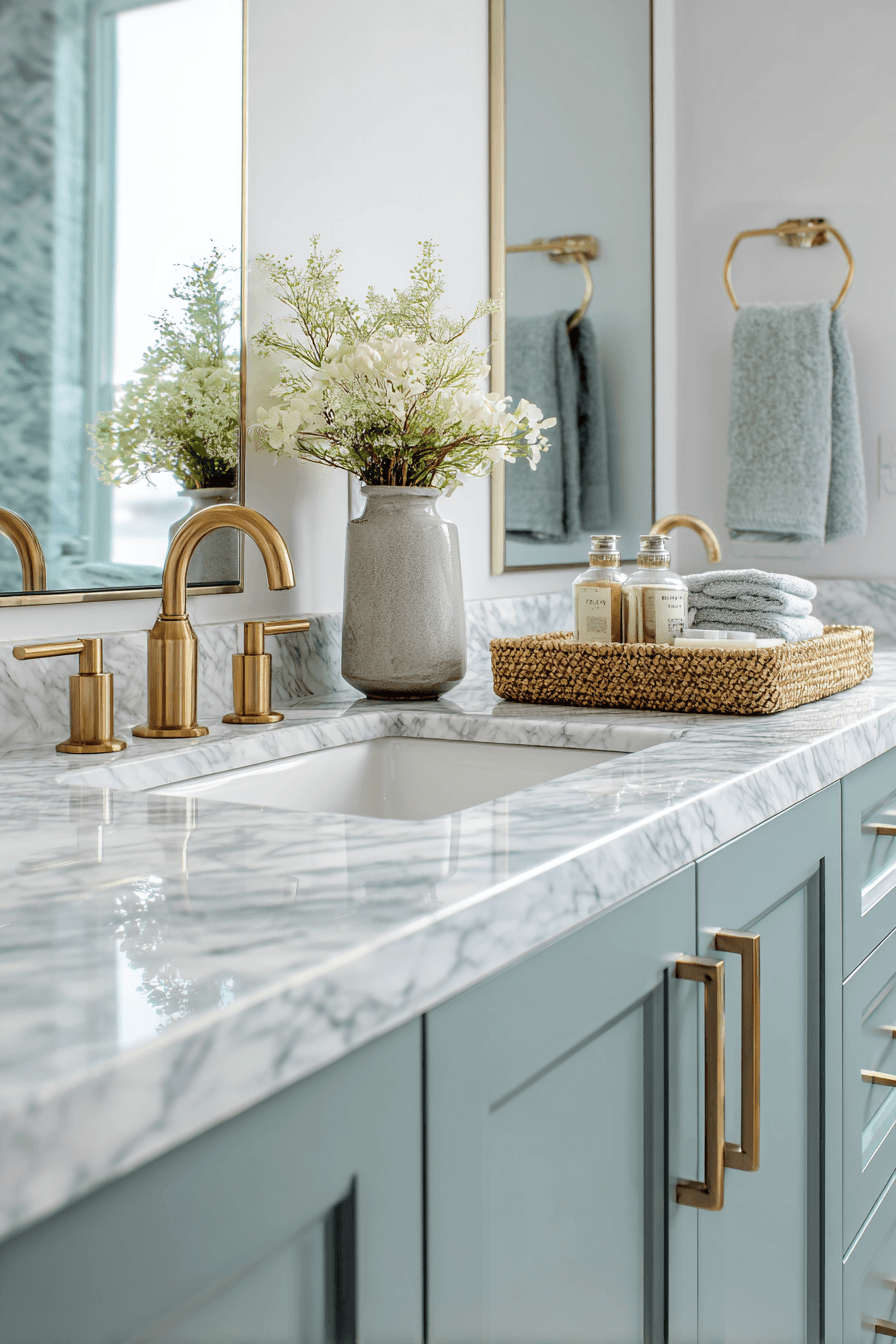 Even the smallest space can feel elevated with the right mix of refined details and coastal charm. In a beach house bathroom, luxe finishes like marble surfaces and statement lighting instantly upgrade the look. The coastal influence comes through soft tones and organic textures rather than overwhelming decor. This keeps the design feeling modern, clean, and effortlessly elegant. The result is a compact space that still feels bright and sophisticated. Upgrade your powder room and make it feel like a designer space.