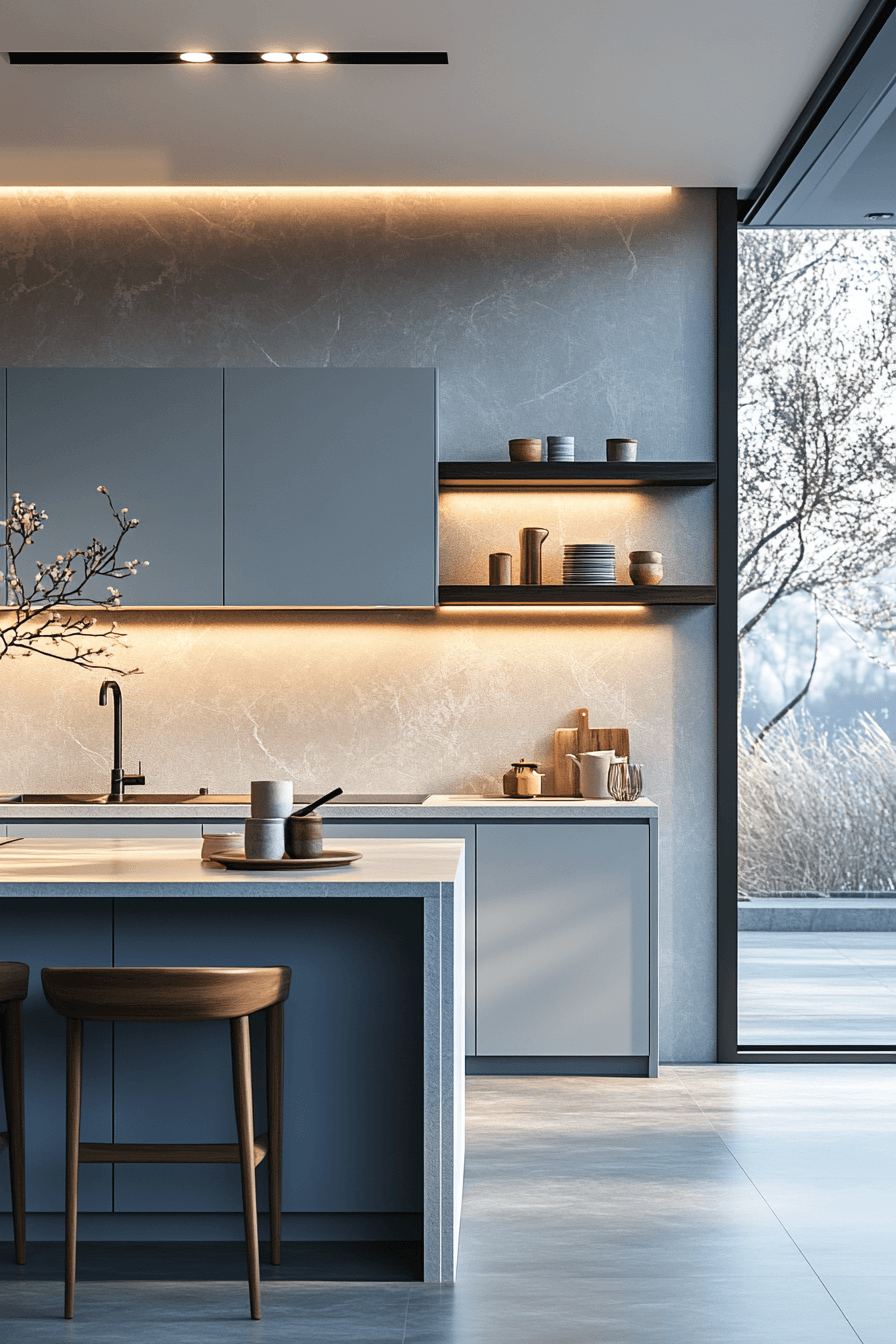 Soft gray-blue tones bring a gentle, calming color palette into a beach house kitchen while keeping the overall look minimal. Clean cabinetry and open layouts maintain a sleek, modern feel. The subtle color adds depth without overpowering the space. Inspired by misty coastal mornings, this palette creates a soothing atmosphere. It feels refined, light, and effortlessly stylish. Refresh your kitchen with this soft coastal tone and enjoy a serene upgrade.