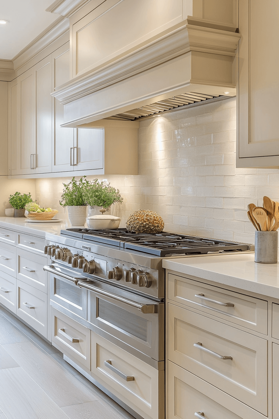 Soft beige tones and clean lines create a calm, understated look that works beautifully in a beach house kitchen. The neutral palette reflects sandy shores while maintaining a modern edge. Sleek cabinetry and minimal details keep the space uncluttered and easy on the eyes. This simplicity helps the kitchen feel more open and relaxing. It’s a versatile style that can easily evolve with small updates over time. Embrace this subtle coastal look and create a kitchen that feels effortlessly refined.