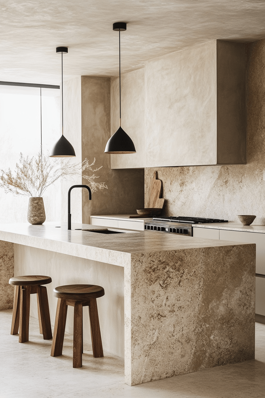 Marble surfaces paired with soft coastal tones give a beach house kitchen a luminous, elevated feel. The reflective quality of marble helps bounce light around, making the space feel even more open. Gentle veining adds movement that subtly echoes the look of ocean waves. When combined with light cabinetry, the overall design feels polished yet relaxed. It’s a perfect mix of elegance and laid-back coastal living. Upgrade your kitchen with this glowing, marble-inspired style.