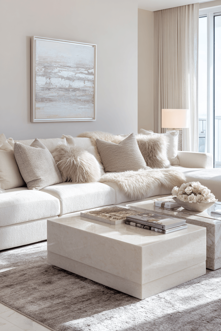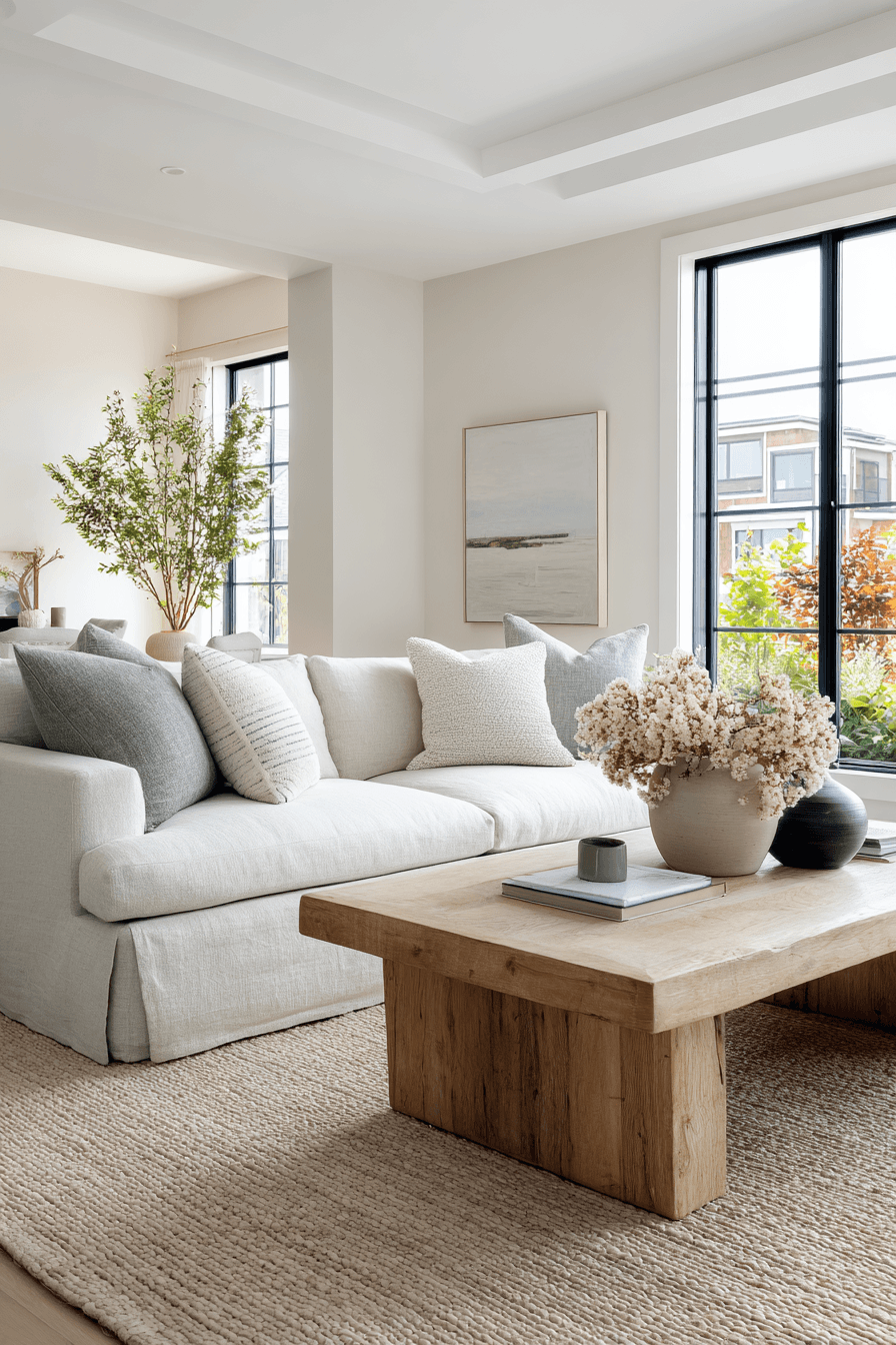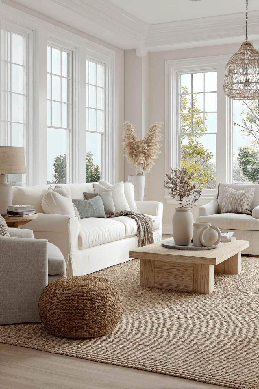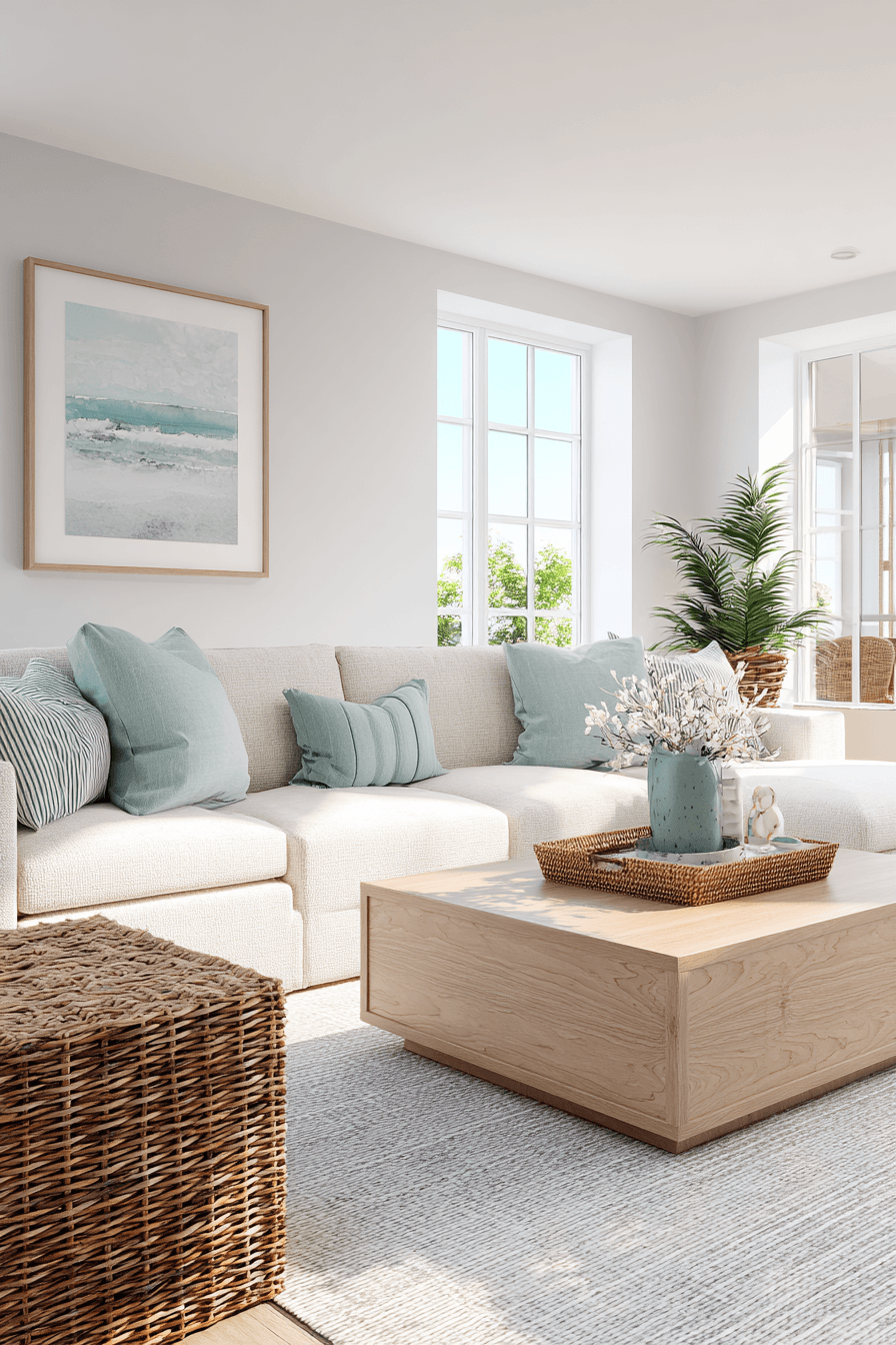 Layered neutrals create a timeless and versatile look that works beautifully in a beach house living room. Shades of white, cream, taupe, and soft sand tones provide a calm and cohesive foundation. The simplicity of the palette allows textures like woven rugs and soft upholstery to stand out. Subtle coastal accents add personality while keeping the space uncluttered. In a beach house living room, this approach keeps things feeling sophisticated yet relaxed all year long. Refresh your space with these easy, elegant neutral layers.