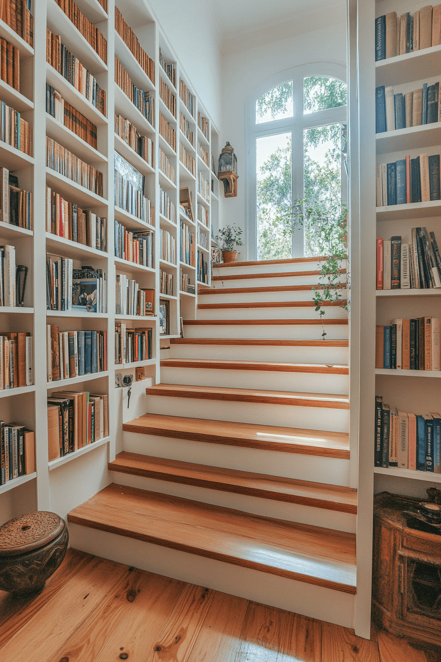 10. Stairway Bookcase Storage Nook