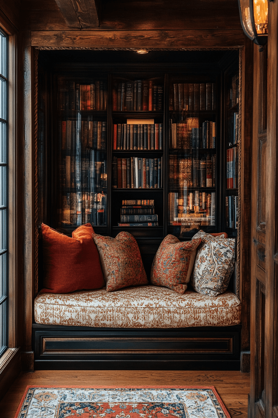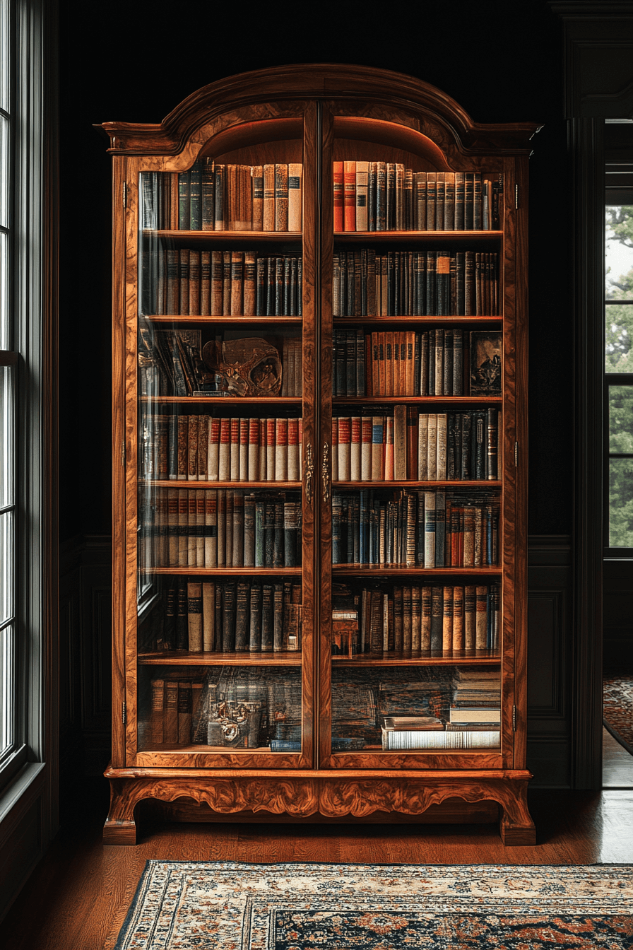 Glass-front shelving combines display with protection, making it one of the most refined bookshelf ideas. Transparent doors keep dust away while showing off your favorite reads. The look is polished, perfect for formal rooms or curated collections. Add lighting for a gallery effect. It’s upscale, thoughtful, and incredibly functional.
