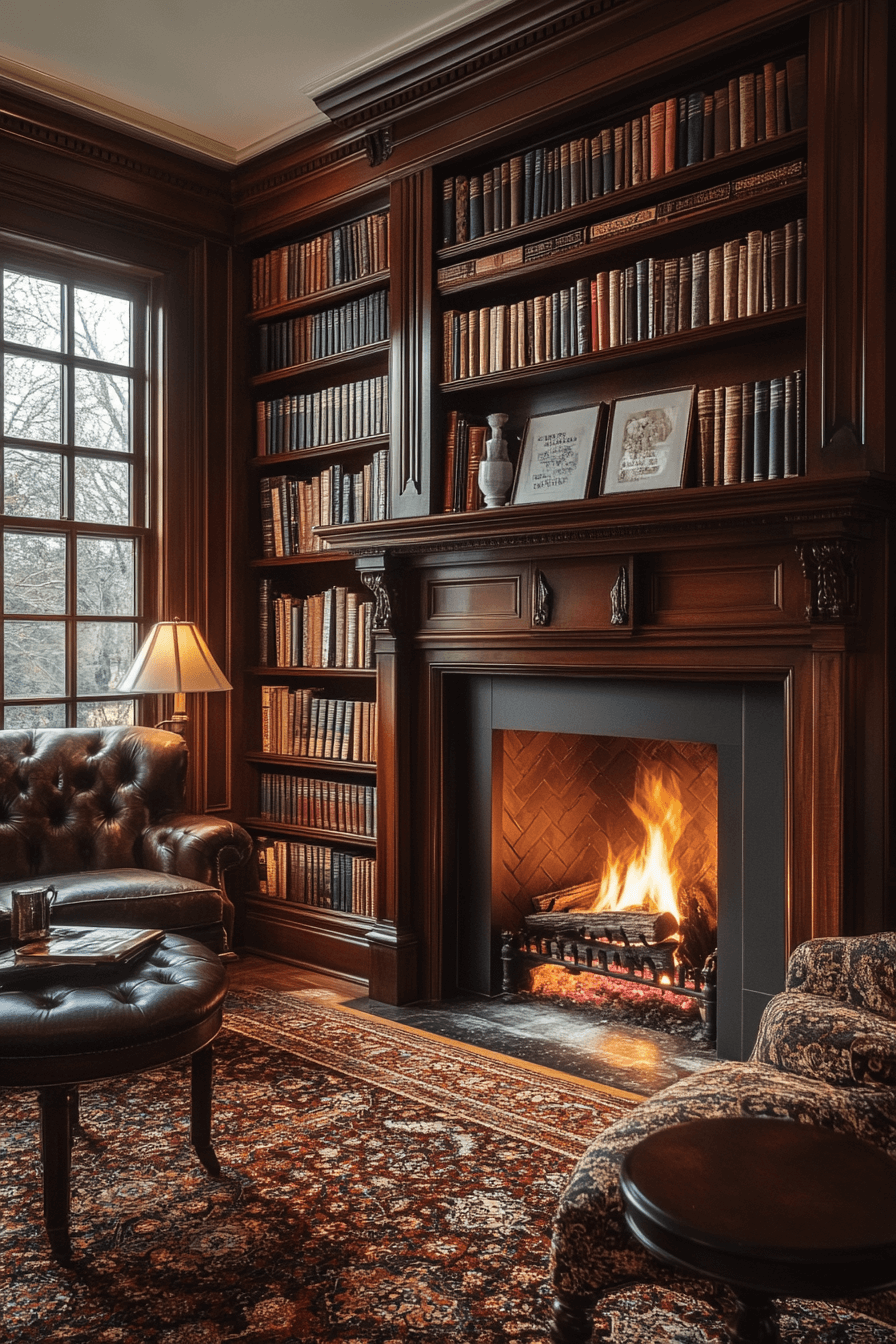 Mantel shelving offers a beautiful way to blend warmth and function, making it one of the coziest bookshelf ideas. By adding shelves above or beside your fireplace, you create a natural focal point that celebrates comfort and style. It’s perfect for displaying your favorite books, candles, and seasonal accents. The layered look adds charm without crowding the space. Ideal for traditional, rustic, or cottage-inspired interiors.