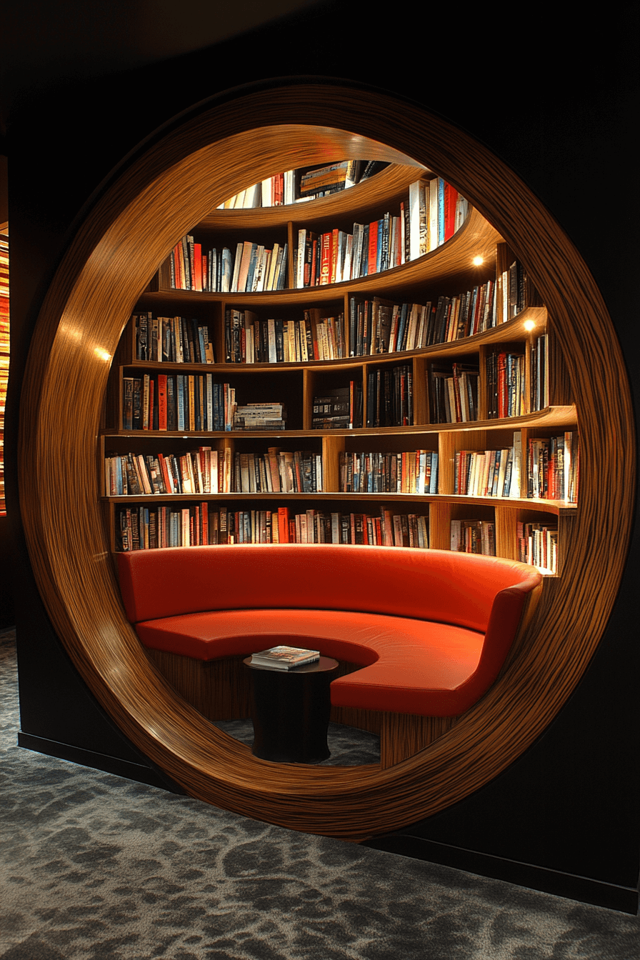 Circular shelving creates a soft, sculptural statement that’s both functional and fashionable. These bookshelf ideas swap straight lines for rounded designs that add a modern artistic vibe. Great for entryways, reading nooks, or statement walls, they bring movement and balance to any room. You can go minimalist or mix in bold colors for extra impact. Either way, they’ll turn heads.