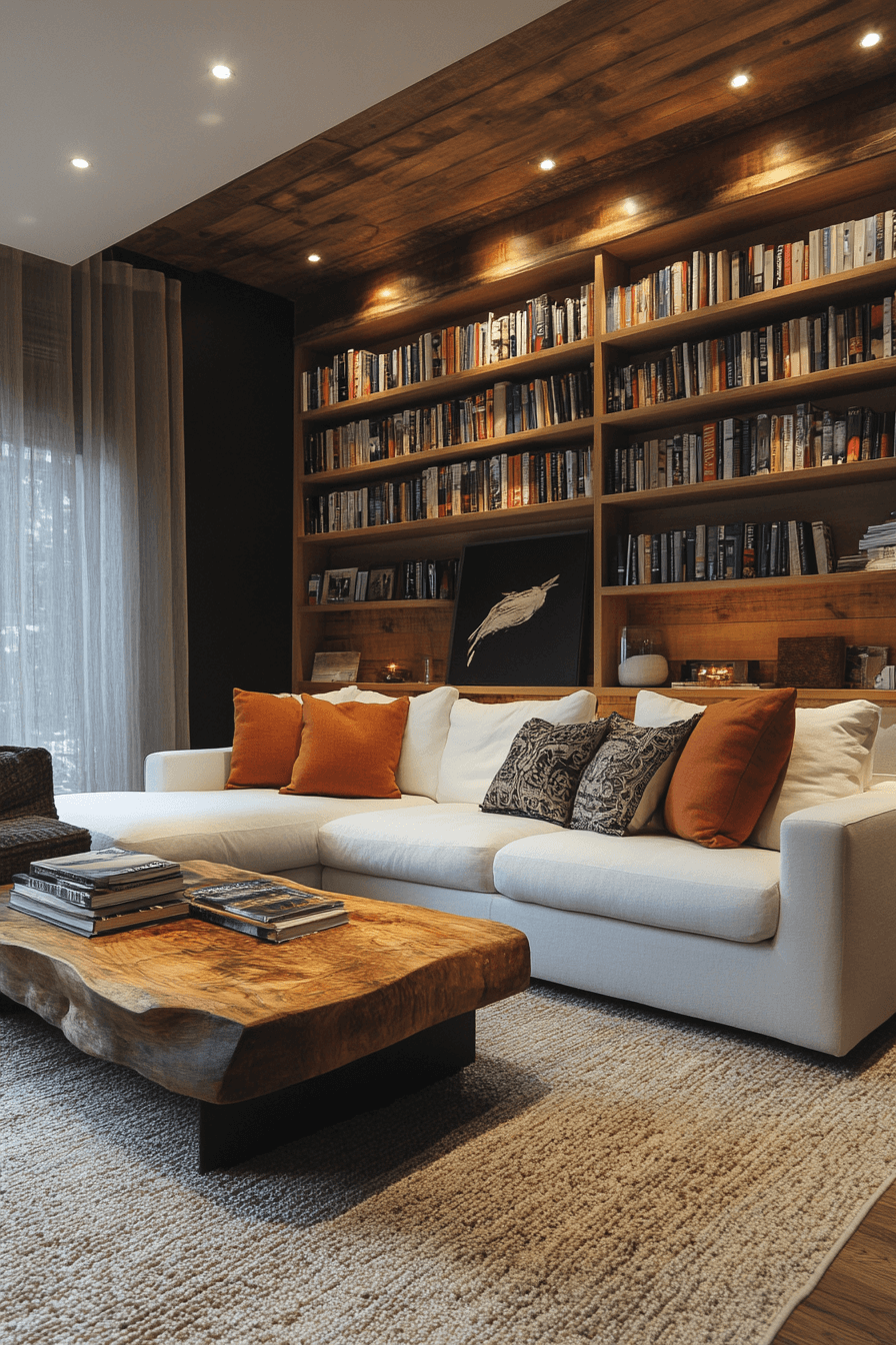 Sofa-back shelving is a genius solution for small spaces, offering bookshelf ideas that use every inch wisely. Wrapping shelves behind or around your couch gives you easy access to books without needing extra room. It keeps things cozy, efficient, and visually interesting. Perfect for open-concept spaces or compact apartments. It’s comfort and storage rolled into one.