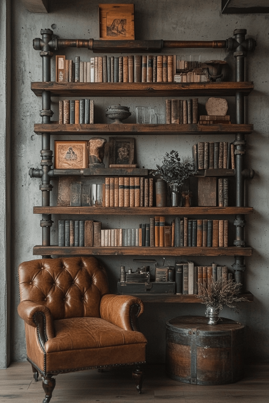 Industrial pipe shelves bring together rugged materials and cool, urban vibes for bookshelf ideas that truly stand out. With metal frames and reclaimed wood planks, they offer strength and style in equal measure. Great for modern apartments or lofts, these shelves carry both weight and attitude. The raw finish adds character to books and decor alike. Bold and functional, they’re made for statement spaces.