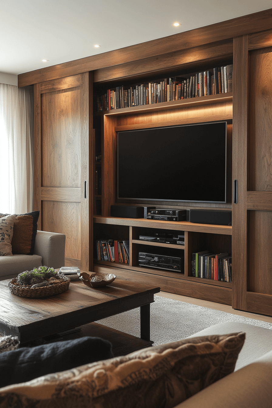 Sliding door shelves add surprise and function, combining storage with a cool design twist. These bookshelf ideas feature panels that move to conceal or reveal your books and treasures. Great for home offices, dens, or anywhere style meets utility. The motion adds dynamic energy while helping to declutter. Sleek and clever, they’re perfect for modern multitaskers.