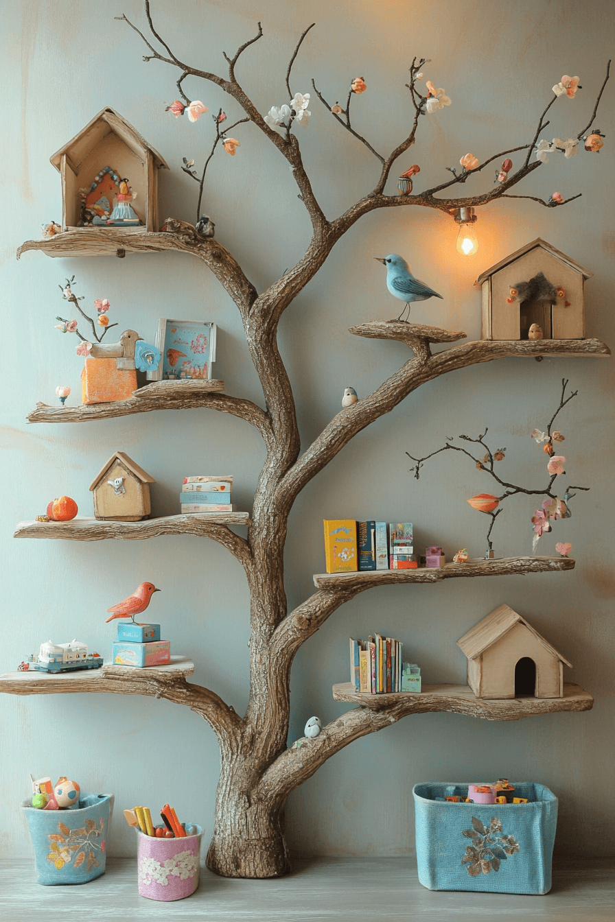 Tree branch shelving adds whimsy and nature-inspired charm, making them one of the most enchanting bookshelf ideas. Each branch becomes a unique shelf, full of texture and character. Ideal for boho homes, kids’ rooms, or creative nooks. The sculptural look feels straight from a storybook. Earthy, playful, and full of heart.