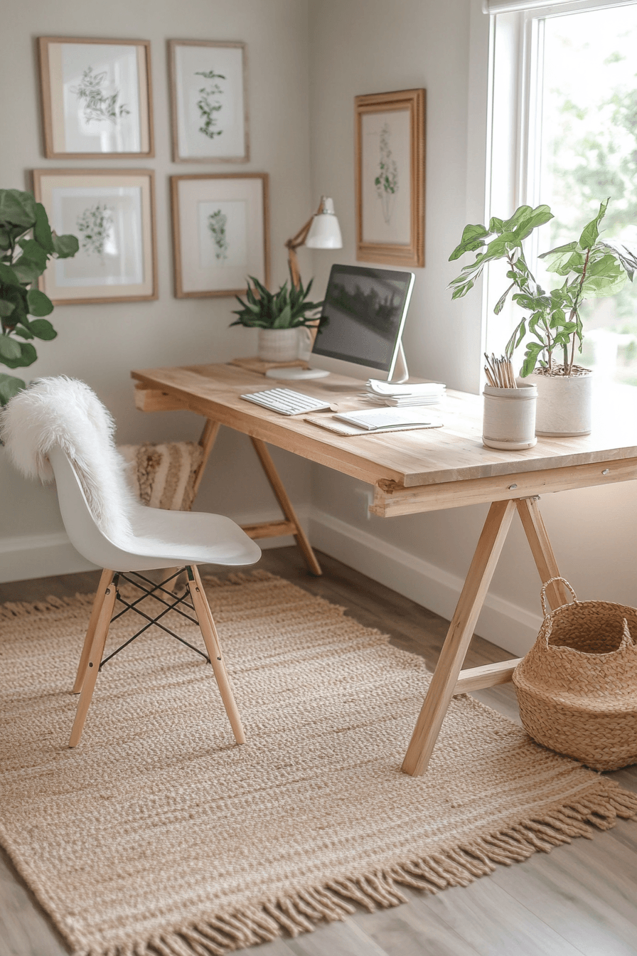 An airy desk escape creates breathing room within calming office decor, helping reduce stress and improve focus. Open space around the desk allows the mind to feel less crowded and more at ease. Light tones like soft whites and pale woods enhance the airy, spacious feel. The layout keeps essentials within easy reach while avoiding unnecessary clutter. Soft materials like fabric seating or a light rug add comfort without weighing down the design. The mood feels open, calm, and mentally refreshing. Tap to explore more airy workspace inspiration.