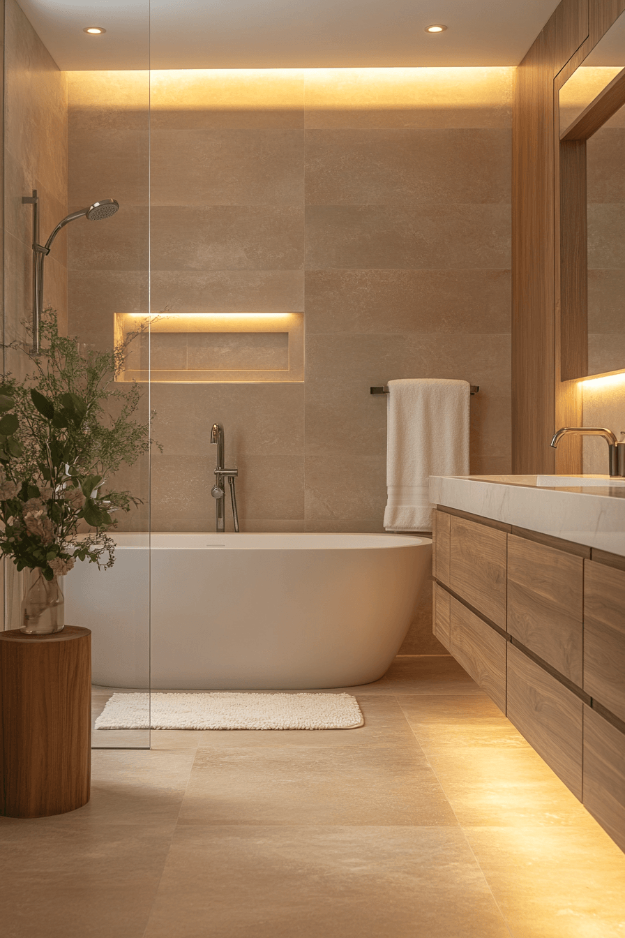 1. Neutral Warmth Bathroom Retreat