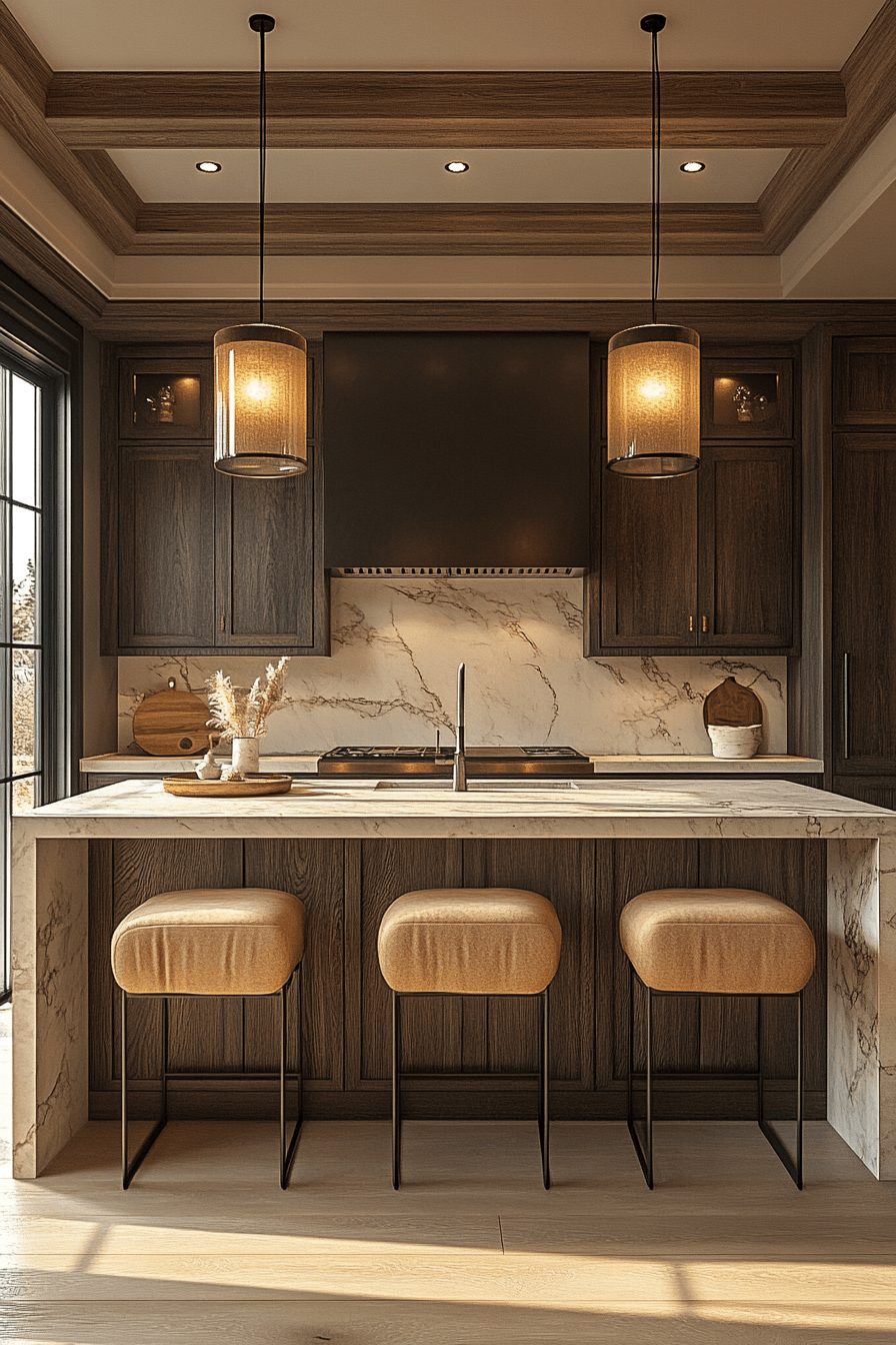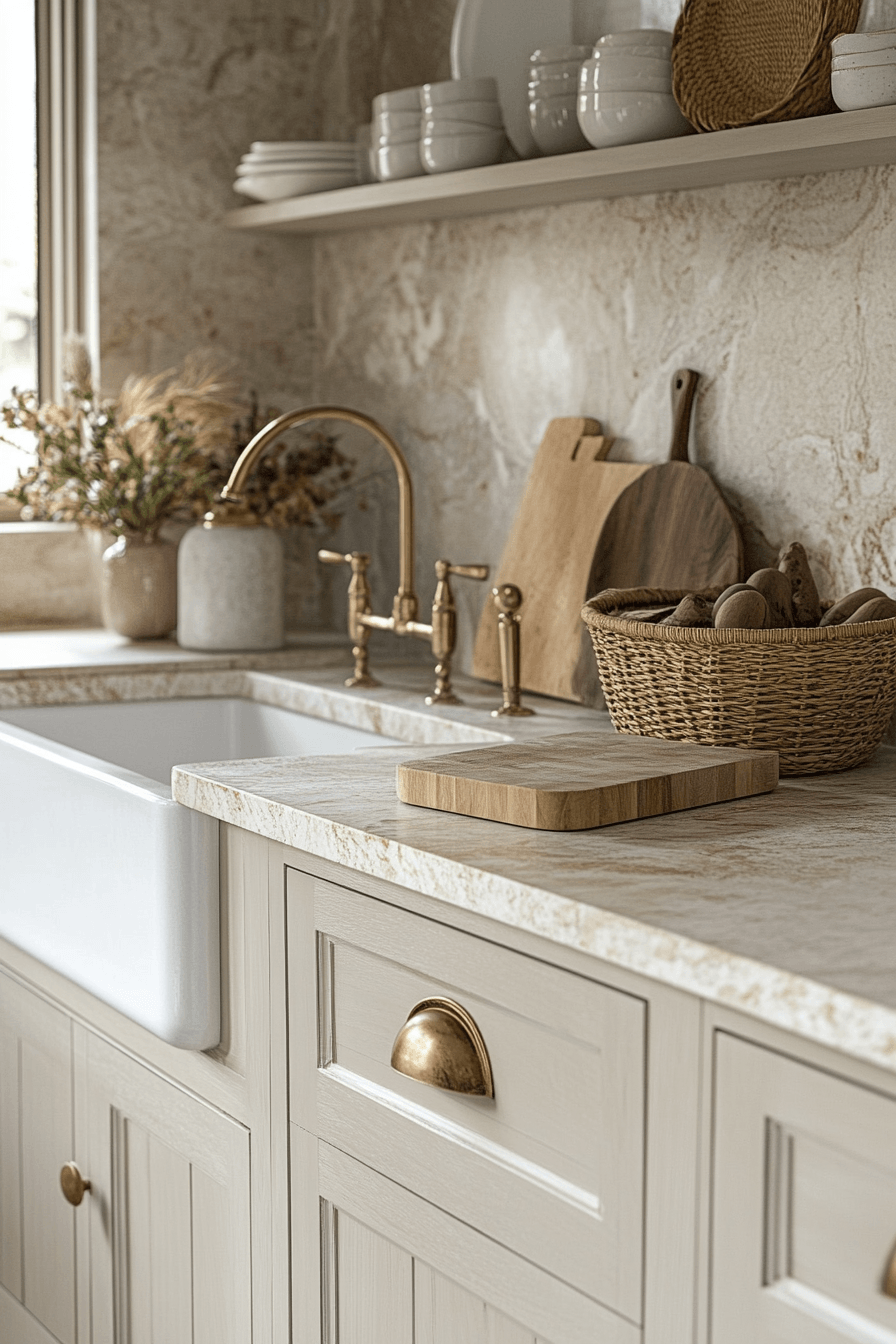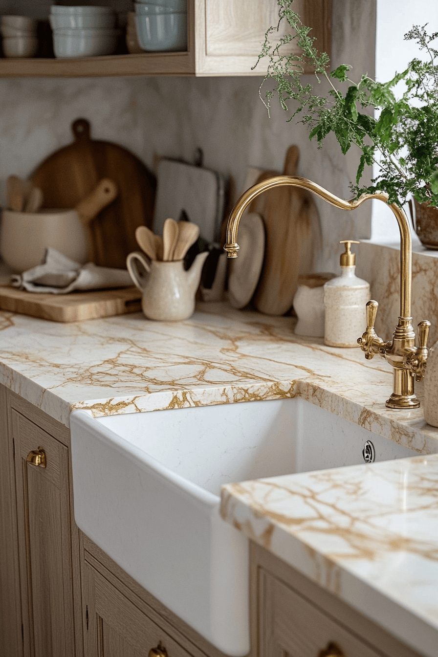Natural stone surfaces bring depth and texture into a cozy kitchen, adding warmth in a subtle, organic way. The unique patterns in stone pair beautifully with wood, metal, and soft fabrics. This combination creates a look that feels elevated yet still approachable. The natural variations soften the edges of modern designs, making the space feel more inviting. It’s an easy way to introduce quiet luxury into your kitchen. Tap to explore stone countertop ideas that add instant warmth.