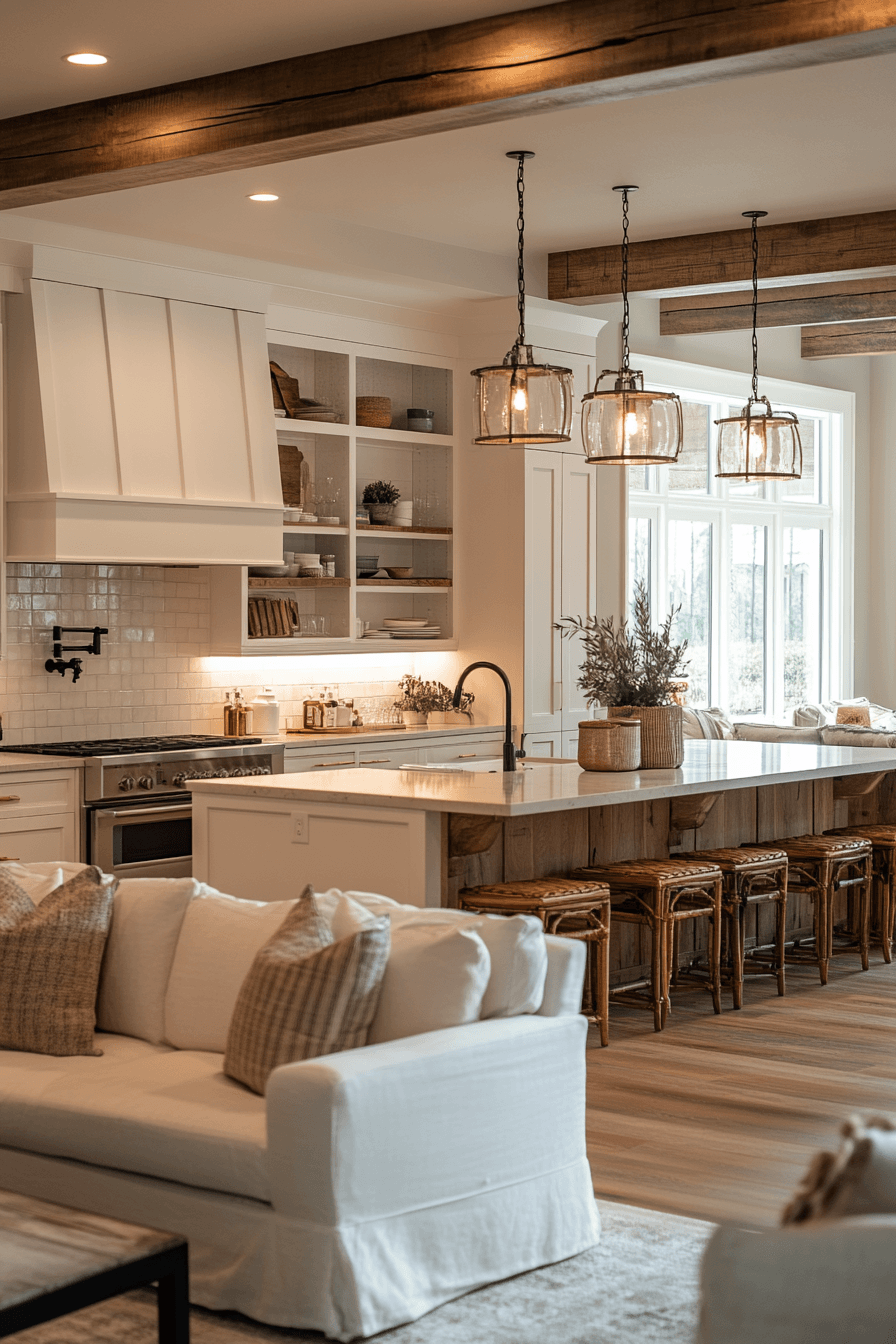 An open layout can still feel warm and inviting when designed as a cozy kitchen that flows into surrounding spaces. Soft textiles, neutral tones, and gentle lighting help tie everything together seamlessly. The kitchen becomes part of the overall living experience rather than a separate area. This design encourages connection, conversation, and comfort. Even with more space, the cozy feeling remains strong and welcoming. Click to embrace this open and cozy kitchen style.