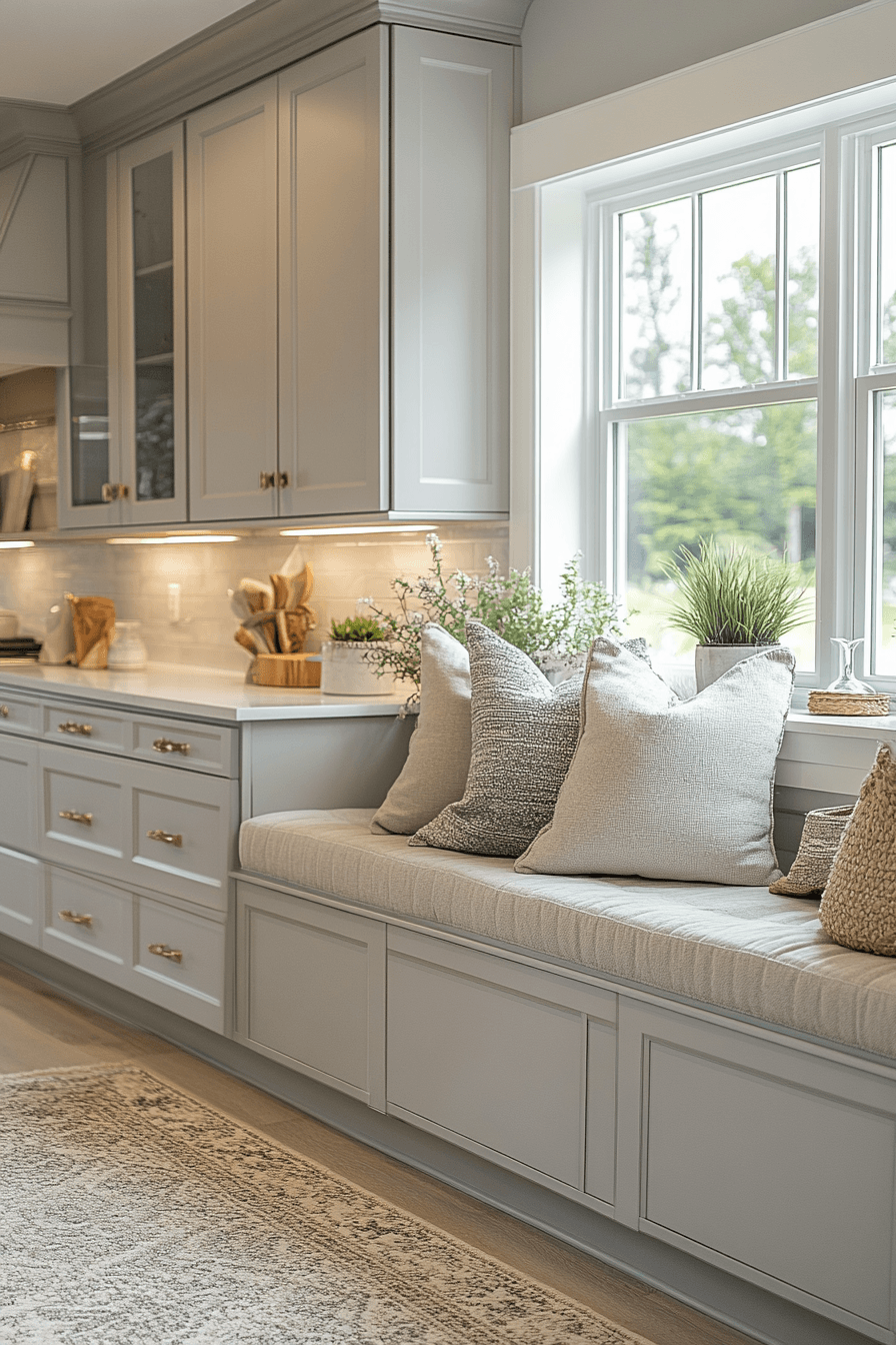 A built-in banquette instantly turns a cozy kitchen into a charming and functional gathering spot. Cushioned seating, layered pillows, and soft textiles create a snug corner you’ll love using daily. It makes great use of space while adding warmth and personality. This setup works beautifully for both small kitchens and larger layouts. It becomes the perfect place to relax, sip coffee, or share a meal. Click to discover cozy banquette ideas for your kitchen.
