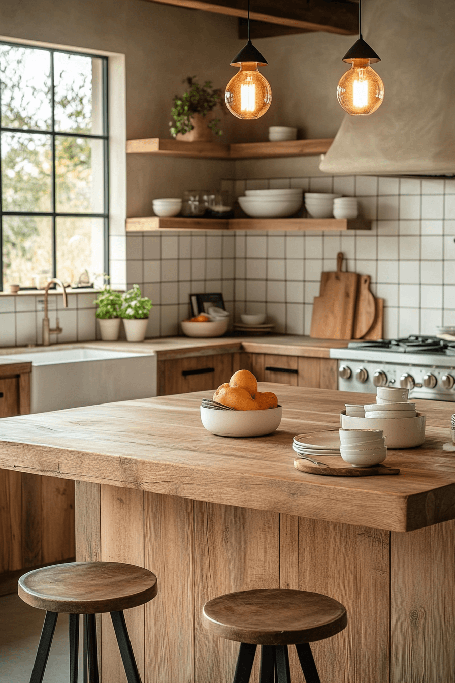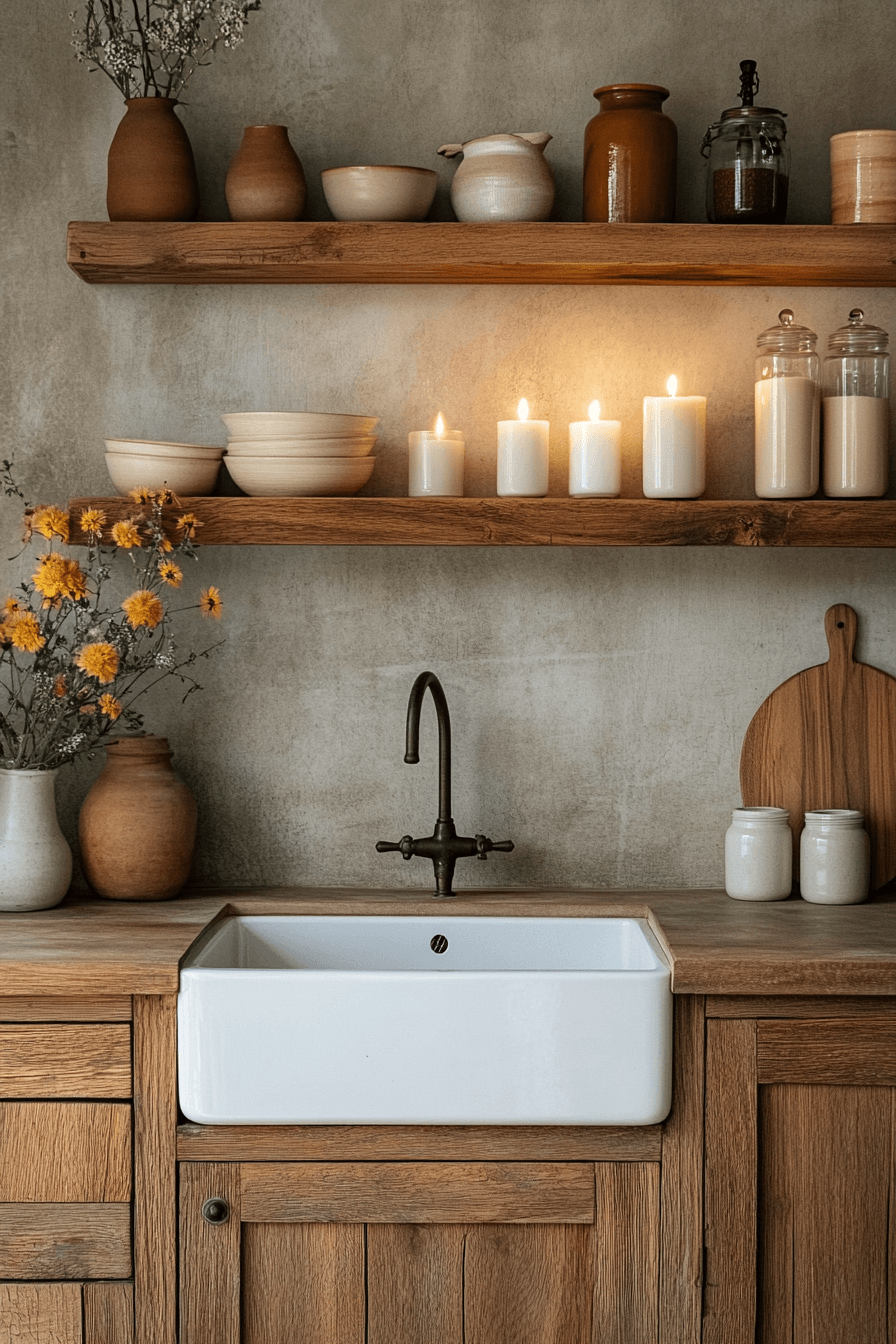 Blending rustic charm with modern simplicity creates a cozy kitchen that feels both nostalgic and fresh. Soft neutral tones, natural wood accents, and simple ceramics bring warmth into the space. Clean lines and modern structure keep everything feeling current and uncluttered. The mix of old and new creates a gentle, lived-in atmosphere. It’s a style that feels comforting while still looking polished. Click to bring this cottage-inspired warmth into your kitchen.