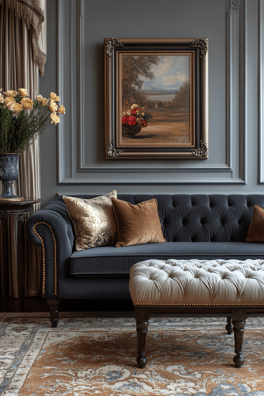 A refined dark grey sofa living room inspired by neo-classical design blends timeless elegance with modern ease. The sofa sits beautifully among decorative moldings, statement chandeliers, and classic architectural details. Contemporary touches like sleek tables or subtle lighting keep the space feeling fresh and balanced. This combination creates a look that feels polished without being overly formal. It’s ideal for those who appreciate tradition with a modern twist. Discover how to elevate your space with this graceful style today.