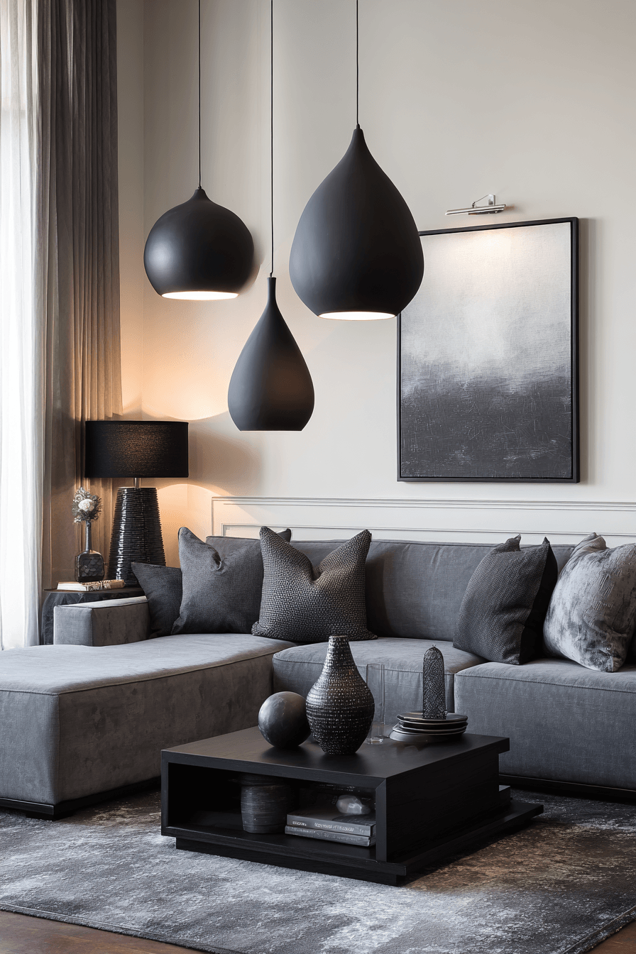 A dynamic dark grey sofa living room comes to life through the interplay of light and shadow, creating a moody yet welcoming atmosphere. The dark grey sofa living room acts as a versatile base, allowing lighting to shape the space throughout the day. Natural light highlights textures while carefully placed lamps add warmth and dimension in the evening. Subtle shadows create movement and visual interest across the room. This approach celebrates depth, contrast, and ever-changing ambiance. Discover how to transform your space with lighting that sets the perfect mood.