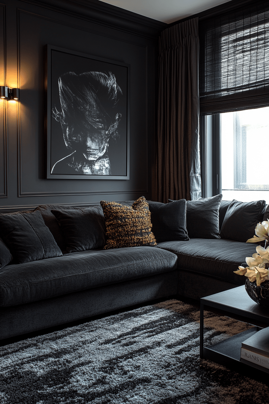 A dramatic dark grey sofa living room thrives on contrast, creating a visually stunning and modern atmosphere. Bright walls or light flooring allow the deep sofa color to stand out boldly. Pops of color through artwork, cushions, or lighting bring energy and excitement to the design. The look feels sharp, intentional, and full of personality. It’s perfect for those who love a high-impact interior. Take a closer look at bold contrast styles and reimagine your space today.