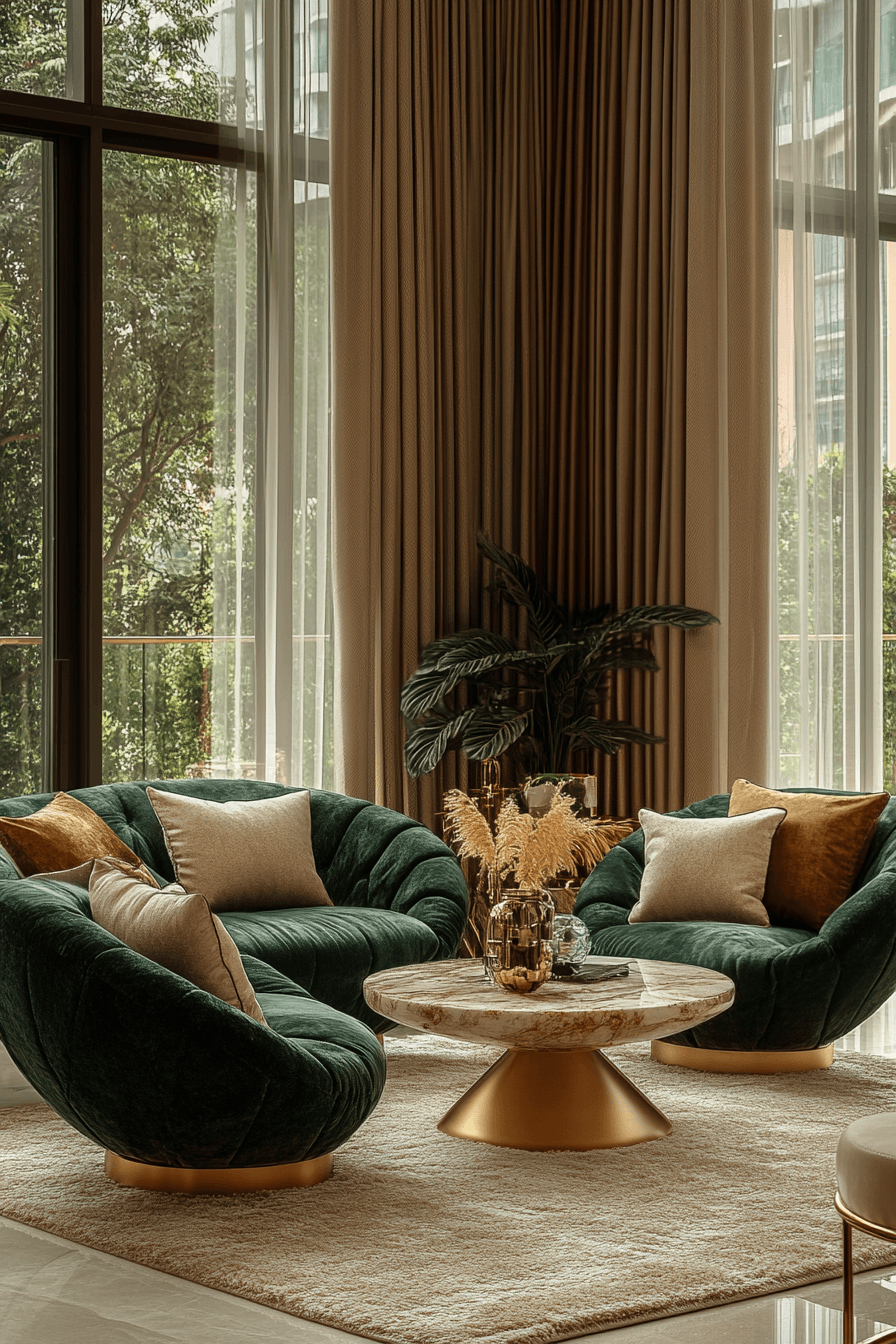 1. Velvet Draped Living Elegance