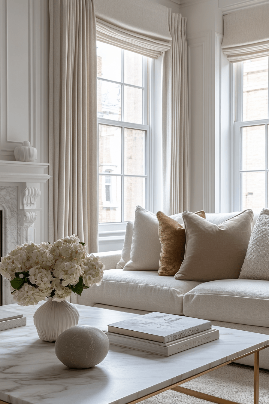 Layered neutrals can feel anything but boring when used thoughtfully in elegant living room design. Mixing wood tones, soft textiles, and subtle metallic accents adds interest without overwhelming the room. The overall look feels calm, yet still rich with detail. Carefully chosen focal pieces help keep the space from feeling too plain. This approach works because it highlights quality and balance over excess. Explore more ideas that elevate neutral styling with ease.