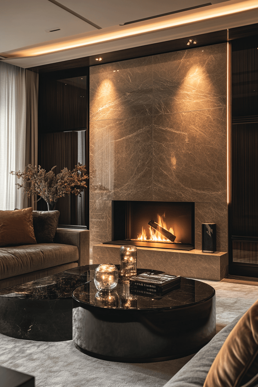 Natural stone elements bring a sense of calm and timeless beauty into elegant living room design. Materials like marble, travertine, or granite add texture while keeping the palette grounded and serene. The natural veining creates gentle movement that feels organic and effortless. When paired with soft fabrics and cozy rugs, the space feels balanced and inviting. Earthy tones tie everything together in a way that feels warm and cohesive. Tap to discover more ways to incorporate natural materials into your space.