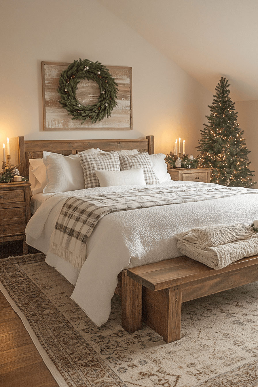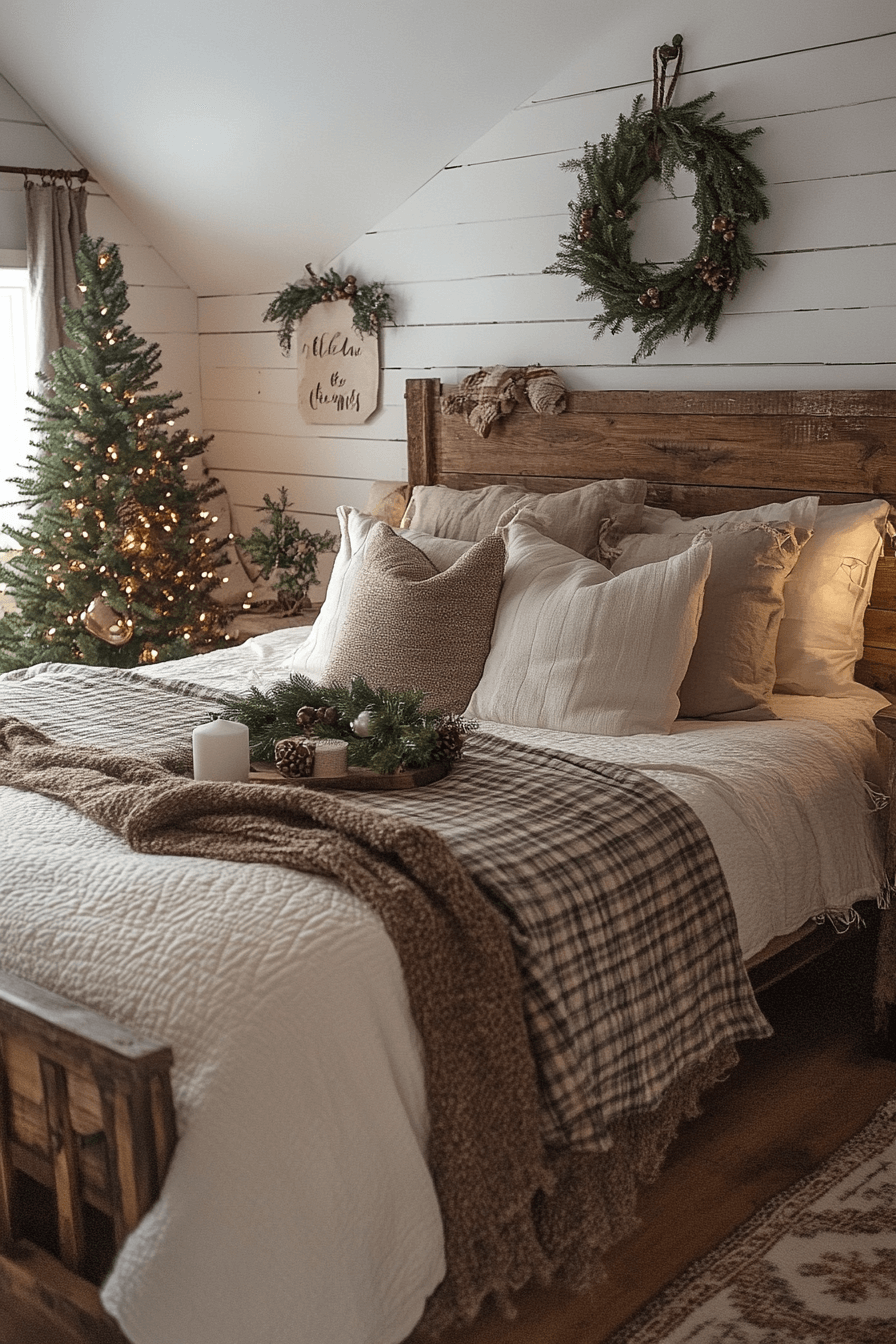 2. Peaceful Farmhouse Christmas Bedroom