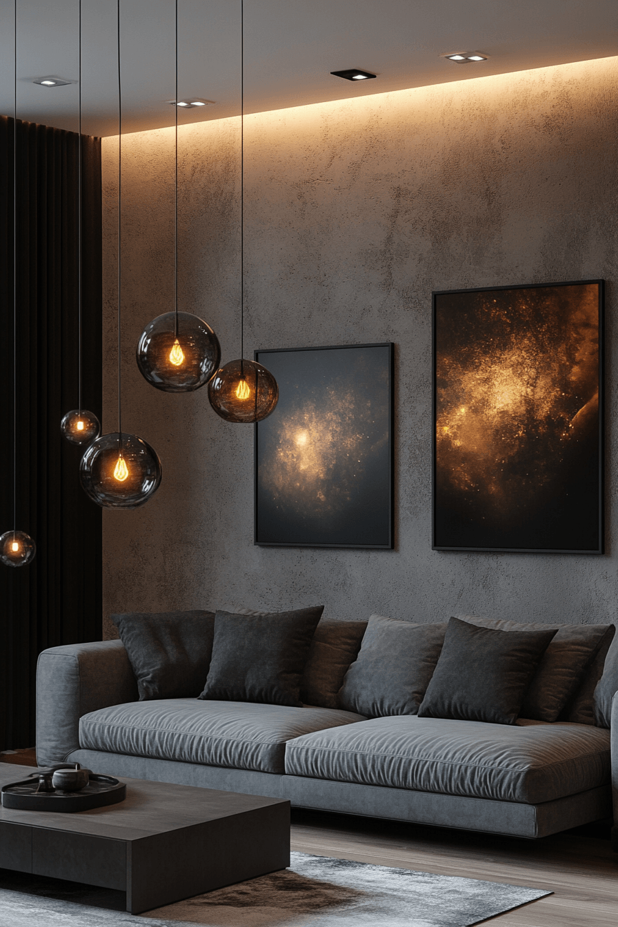 High-contrast styling can transform a grey couch living room into a bold, sophisticated statement. The grey couch pops against deep black accents in lighting, frames, and decor. Clean-lined furniture keeps the look sharp while preventing visual clutter. This mix of tones creates a dramatic yet refined atmosphere that feels contemporary. The result is confident, sleek, and undeniably stylish. Click to discover more grey couch living room ideas with striking contrast.