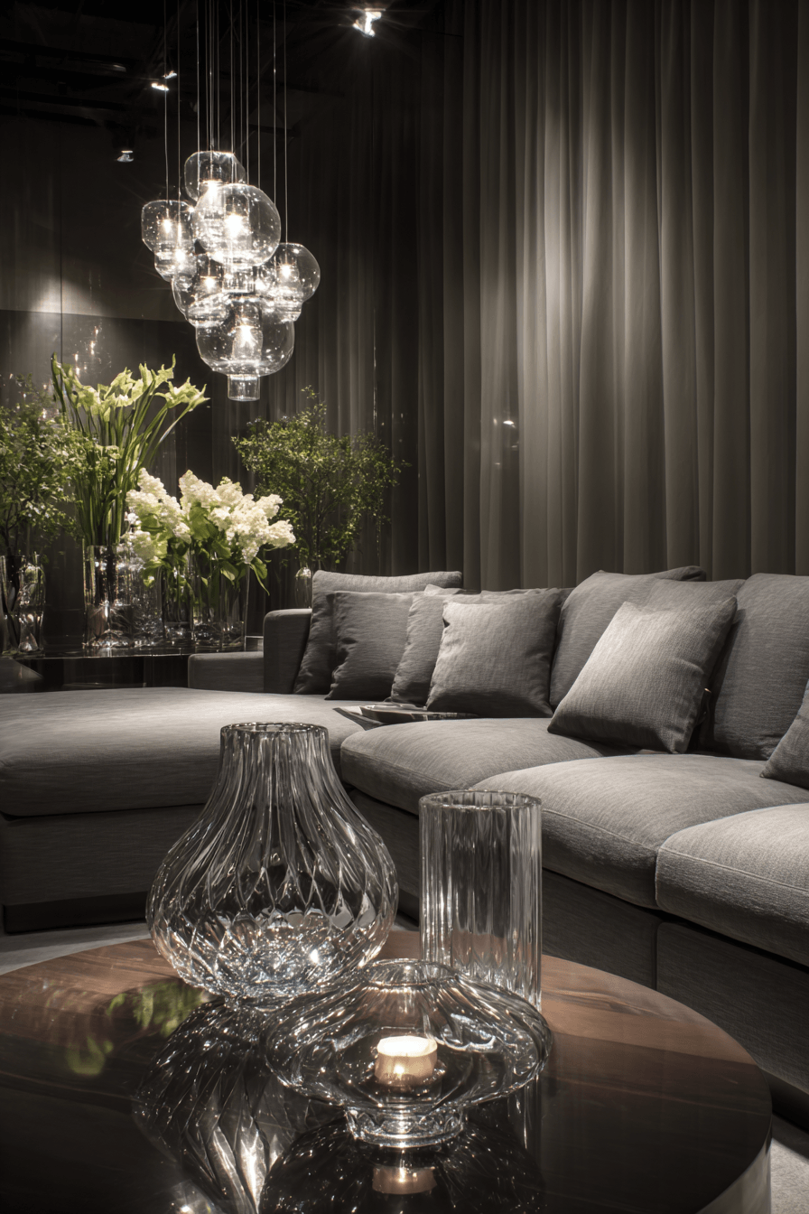 Light-reflecting finishes can elevate a grey couch living room with a fresh, modern glow that feels effortlessly elegant. The grey couch pairs beautifully with glass tables, sleek lamps, and translucent decor that brighten the space. These airy elements help the room feel more open while adding a subtle, polished shine. Keeping the furniture simple ensures everything stays balanced and visually clean. The overall look feels bright, refined, and stylishly minimal. Tap to explore more grey couch living room ideas with glass-inspired accents.
