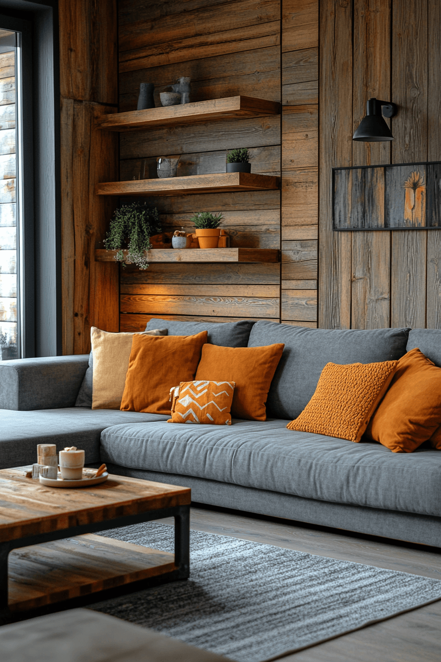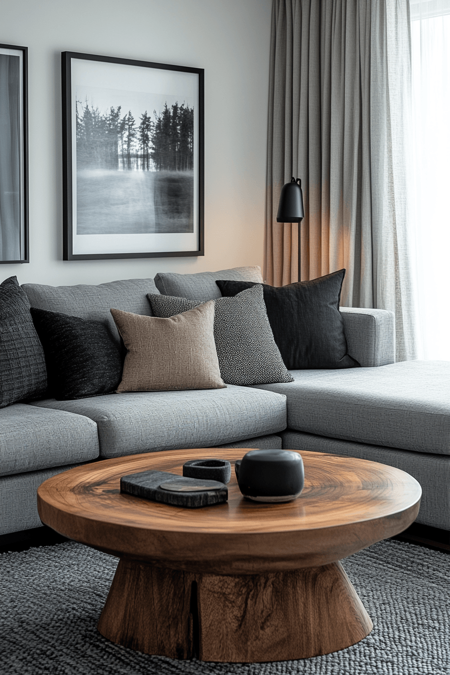 Natural wood tones can warm up a grey couch living room, creating a perfect balance between cozy and contemporary. The grey couch blends seamlessly with wooden coffee tables, shelving, and decor pieces. This mix of textures softens the cool tones while adding depth and comfort. Layered textiles and gentle patterns enhance the welcoming atmosphere. The space feels relaxed, grounded, and easy to enjoy every day. Click to discover more grey couch living room ideas with warm wood elements.