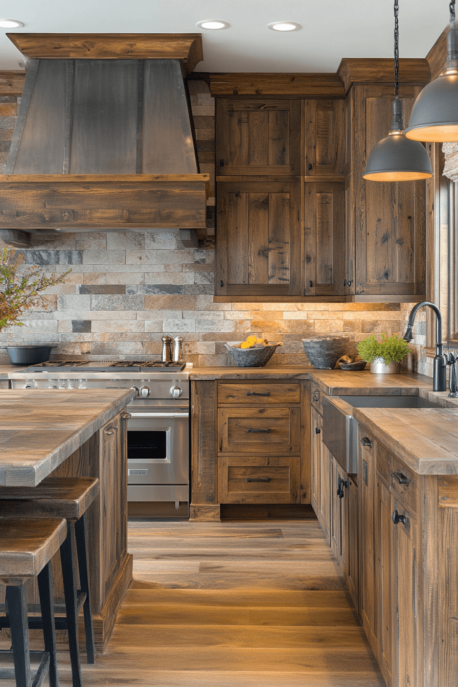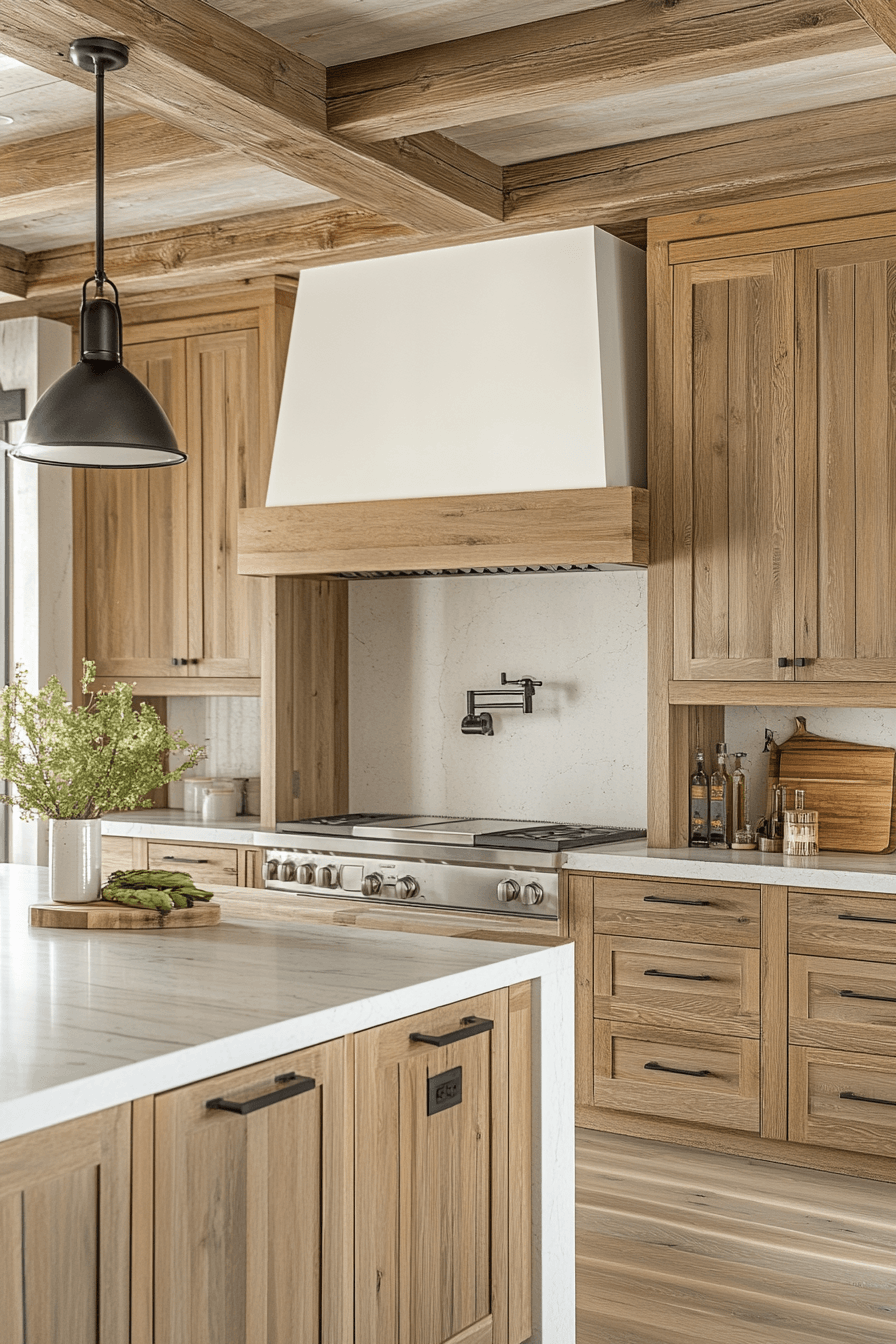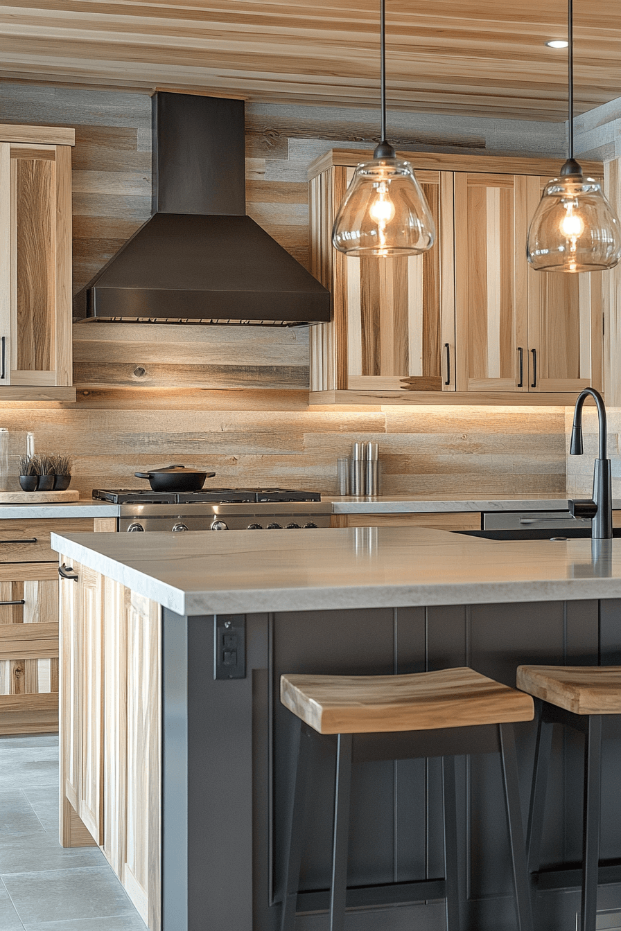 Contemporary rustic style brings together sleek design and natural warmth through hickory kitchen cabinets. Flat-front cabinetry and simple hardware keep the look modern and clean. Hickory kitchen cabinets add texture and character without making the space feel heavy. Pairing them with stone surfaces or subtle greenery enhances the contrast. The result is a kitchen that feels fresh, balanced, and full of life. Click to explore modern rustic ideas that feel effortlessly stylish.