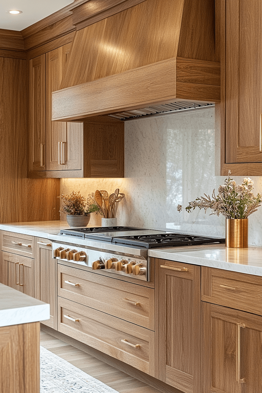 Perfectly aligned grain patterns can turn hickory kitchen cabinets into a true design statement. When the wood flows seamlessly across doors and drawers, the result feels intentional and high-end. Hickory kitchen cabinets naturally have bold grain, making this detail even more eye-catching. This technique works especially well in modern kitchens with clean lines. It adds a sense of artistry and craftsmanship to the space. Click to explore custom cabinetry ideas that feel truly elevated.