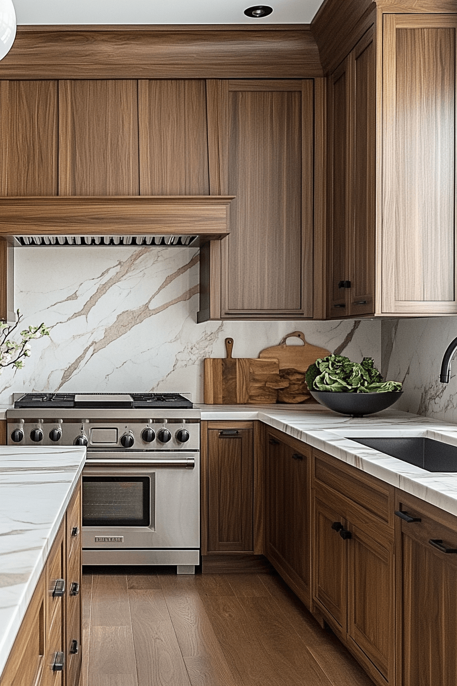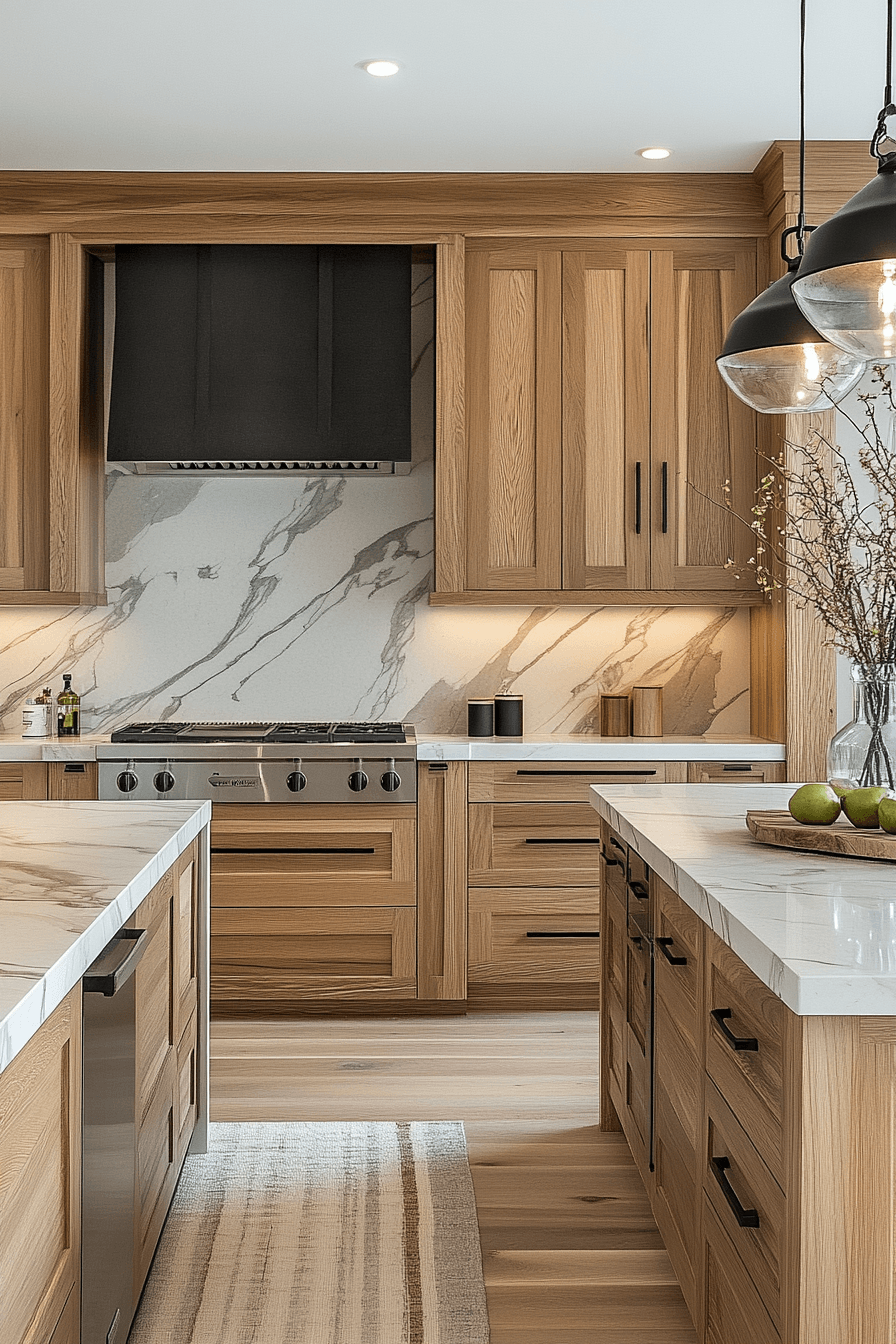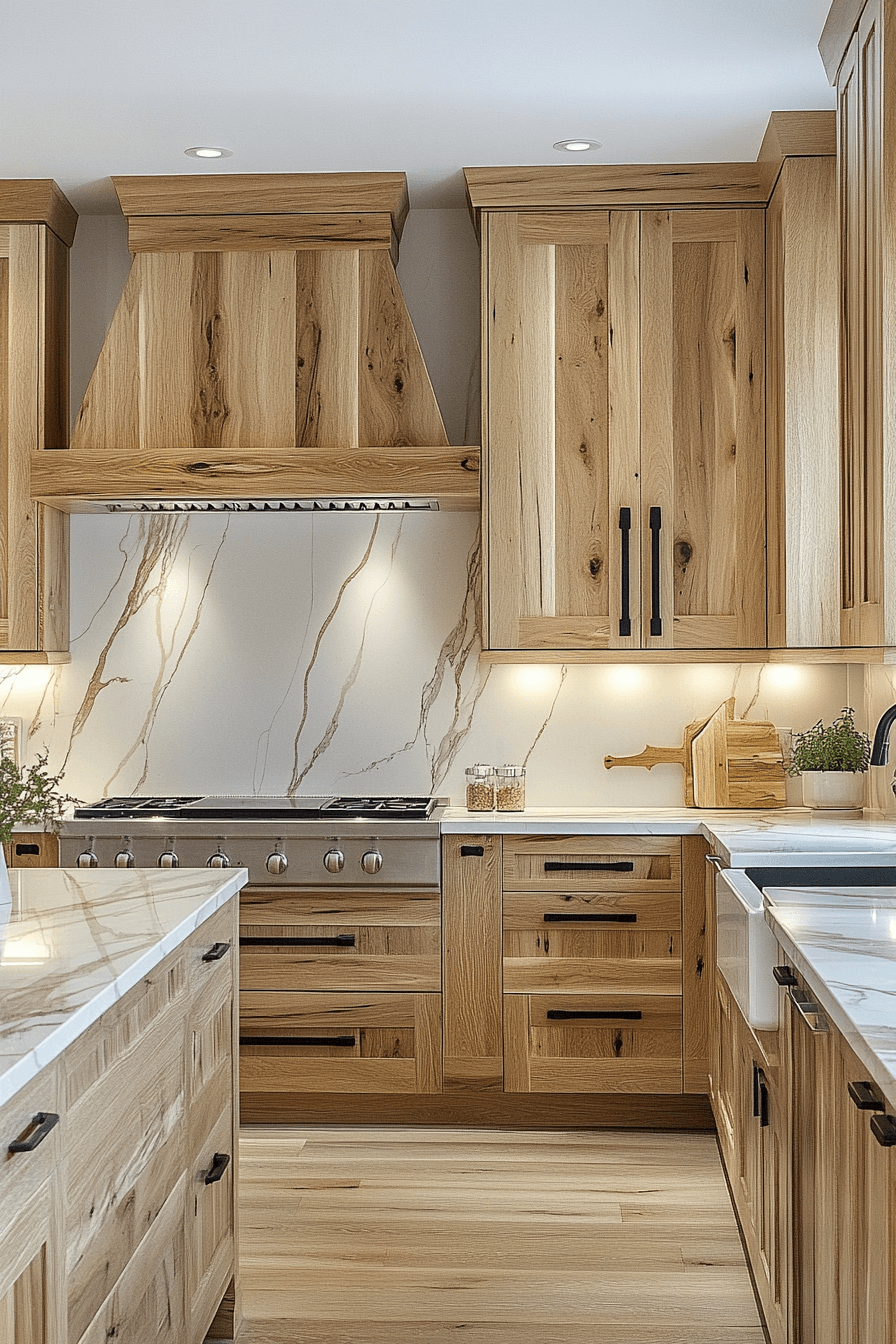 Combining marble with hickory kitchen cabinets creates a stunning contrast that feels both classic and modern. The cool, smooth surface of marble highlights the warmth and texture of the wood. Hickory kitchen cabinets bring depth while marble adds a touch of refined elegance. This pairing works beautifully in a wide range of kitchen styles. Subtle lighting helps enhance both materials for a polished finish. Tap to see how marble and wood create a timeless kitchen combination.