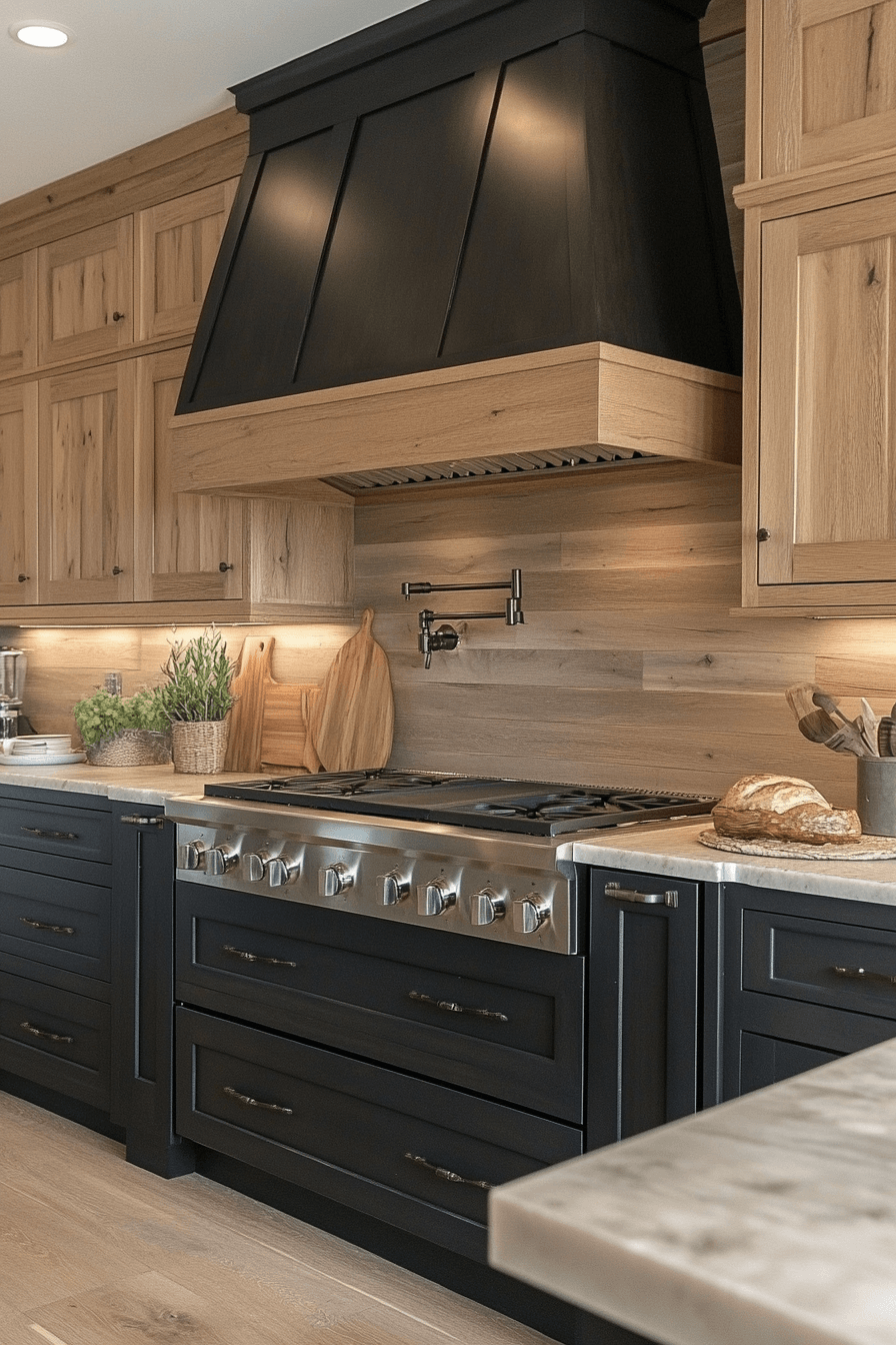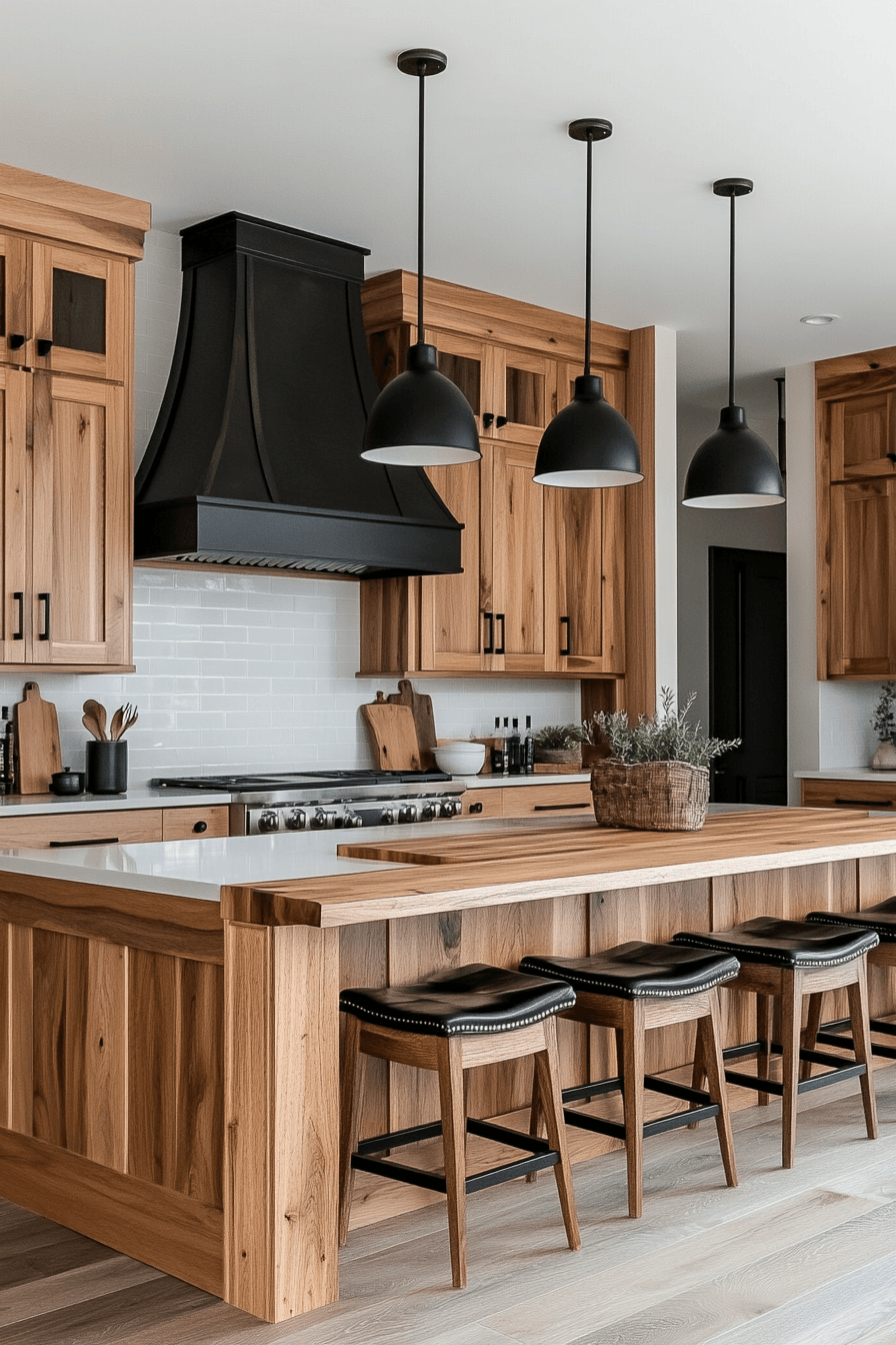Adding black accents alongside hickory kitchen cabinets creates a striking contrast that feels modern and dynamic. Elements like matte black handles, faucets, or lighting stand out beautifully against the warm wood tones. Hickory kitchen cabinets paired with black details work across many styles, from industrial to contemporary. The contrast adds definition and keeps the space feeling sharp and intentional. It’s a simple way to give your kitchen a bold, updated look. Click to explore black and hickory combinations that make a statement.