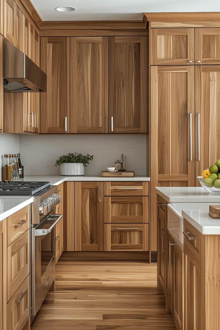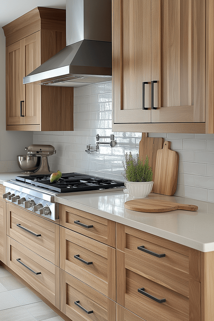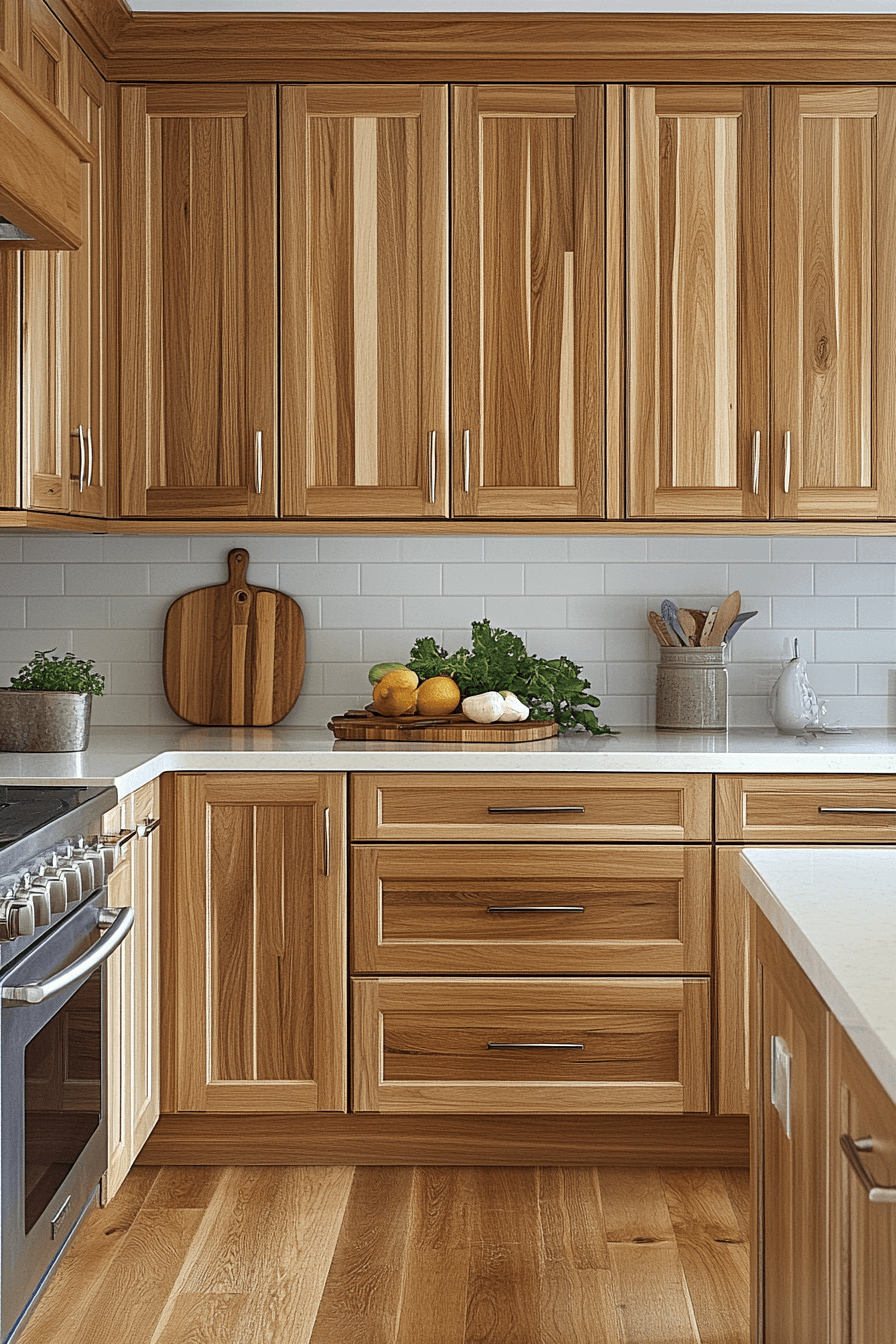 Horizontal grain patterns in hickory kitchen cabinets create a unique and eye-catching visual flow. The continuous lines stretch across drawers and panels, making the space feel wider. Hickory kitchen cabinets with this detail add a modern twist to traditional wood design. Pairing them with sleek profiles or hidden handles keeps the look streamlined. It’s a subtle design choice that makes a big impact. Tap to discover how horizontal grain can transform your kitchen layout.