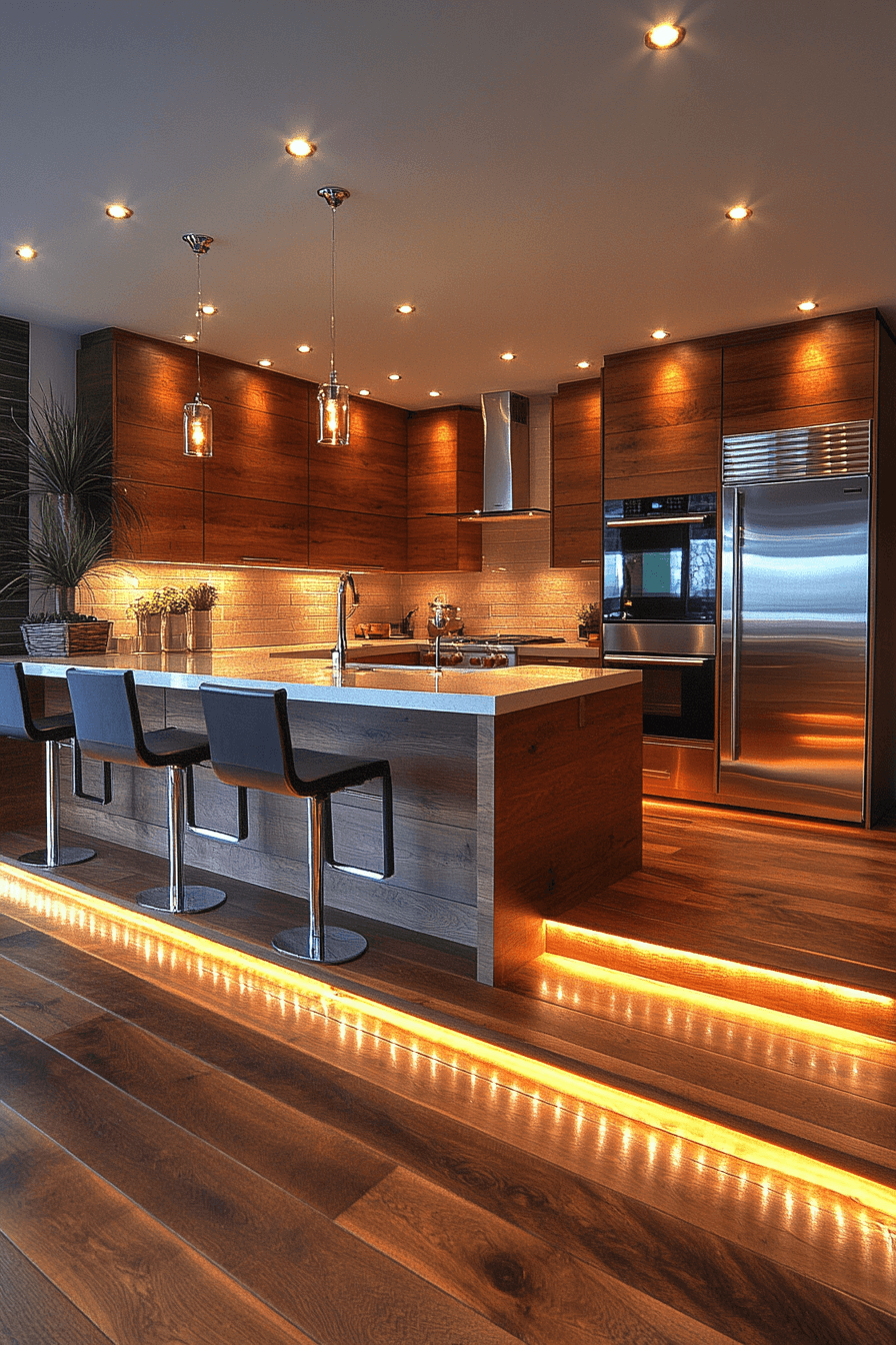 LED strips are some of the most fun and creative kitchen lighting ideas if you want to add a modern glow. Installed under cabinets or shelves, they create a soft halo effect that feels both cozy and stylish. You can switch up the color temperature depending on the mood you want. Their flexibility makes them perfect for tricky spaces or unique layouts. It’s an easy way to add personality and ambiance. Tap to explore LED strip kitchen lighting ideas that transform your kitchen vibe.