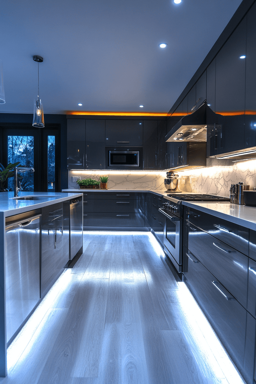 Integrated LED systems are modern kitchen lighting ideas that create a clean and seamless look. Built directly into ceilings or cabinetry, they remove the need for visible fixtures. The result is bright, efficient lighting that feels sleek and minimal. These systems are perfect for kitchens that focus on simple lines and open space. The overall vibe feels fresh, innovative, and uncluttered. Click to explore LED kitchen lighting ideas that bring a modern edge to your space.