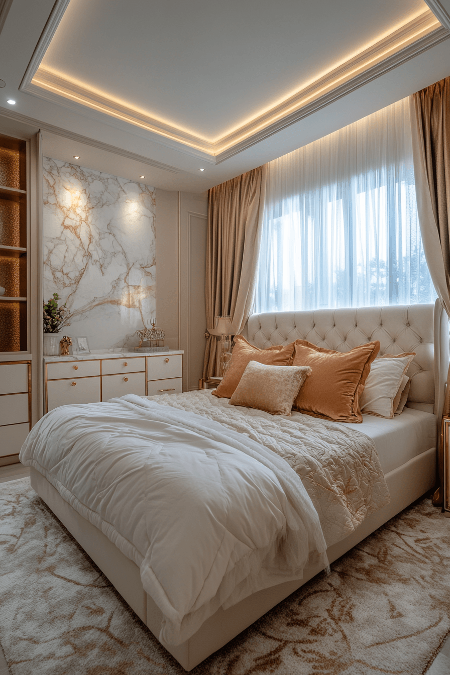 Marble-inspired details bring a refined yet playful feel into a beautifully styled luxury kids bedroom. Faux-marble wallpaper or accent furniture instantly adds that high-end look without sacrificing comfort. Soft tones like blush, white, and hints of gold keep the palette warm and inviting. Gentle lighting and cozy textures balance the polished surfaces so the space still feels kid-friendly. The overall vibe is elegant, bright, and full of charm. Create your own marble-inspired luxury kids bedroom and elevate the space today!